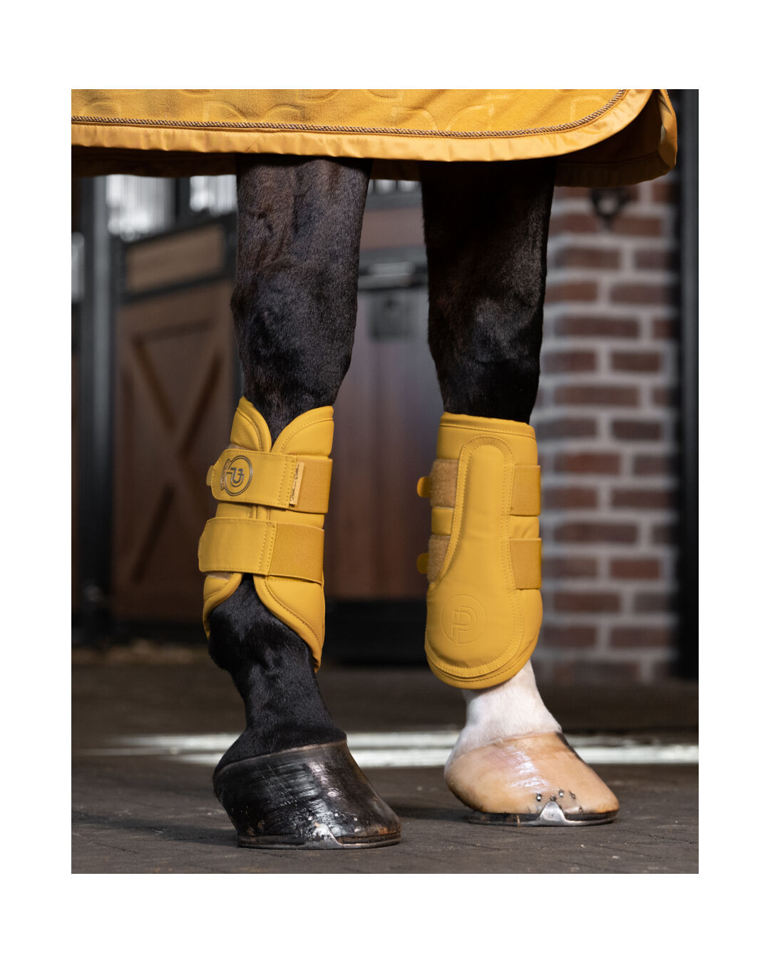 Dank der elastischen Klettverschlüsse lassen sich die Gamaschen perfekt ans Pferdebein anpassen. Die Faux Leather-Klettlaschen mit geprägtem Platinum-Logo runden das Design stimmig ab. Nach dem Reiten lassen sich die Gamaschen ganz einfach reinigen.