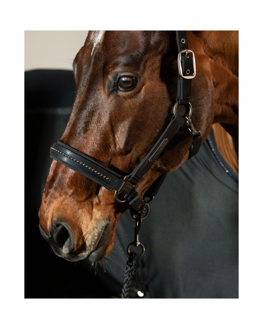 Die unempfindliche Softshell-Oberfläche sieht nicht nur edel aus, sondern lässt sich auch super easy sauber halten. Innen sorgt ein robustes Gurtband für Stabilität – egal ob beim Führen oder Anbinden. Die Polsterung an Nasen- und Genickstücken ist schön weich und bietet deinem Pferd ein angenehmes Tragegefühl.