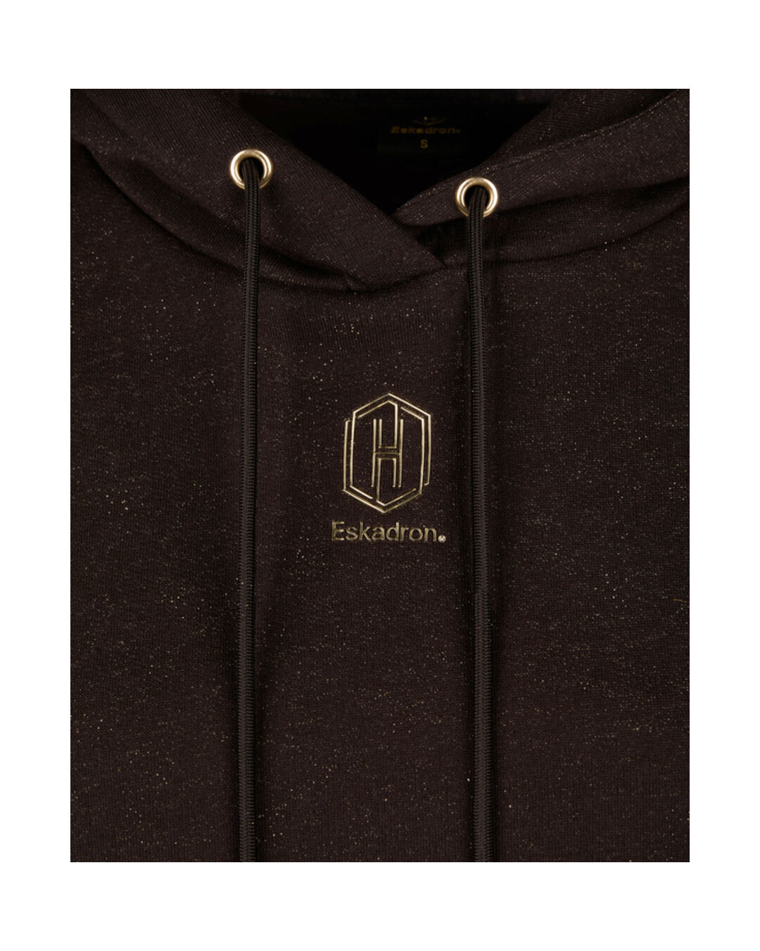 Die Kapuze ist mit einem verstellbaren Kordelzug ausgestattet, damit du sie individuell anpassen kannst. Das Highlight ist der glitzernde Eskadron-Schriftzug auf der Vorderseite – dezent, aber mit Wow-Effekt, der jedem Outfit das gewisse Funkeln verleiht.