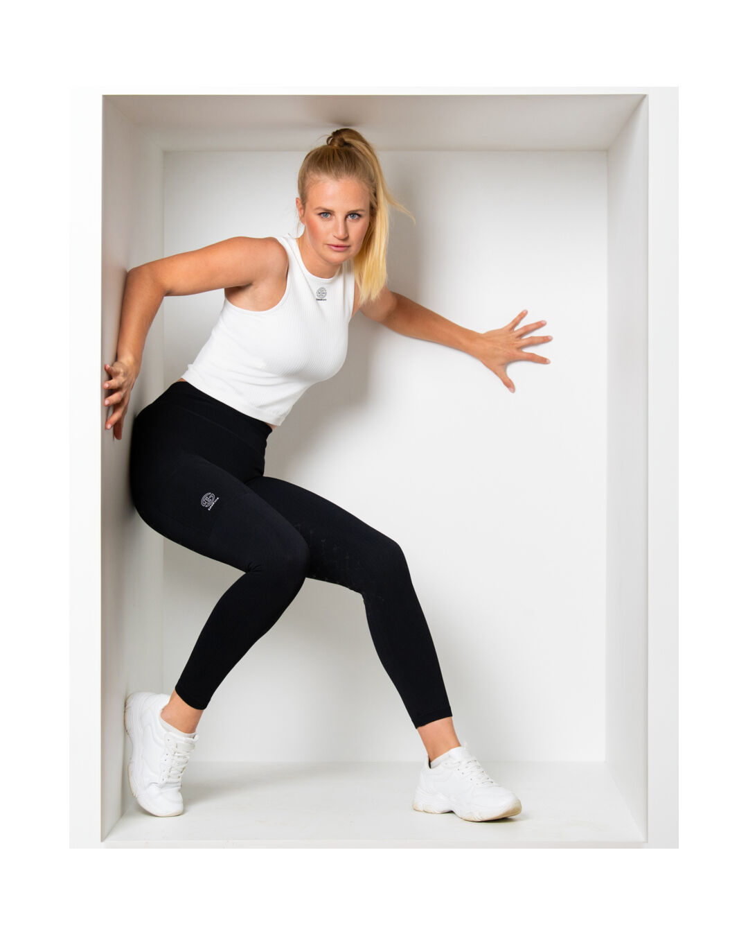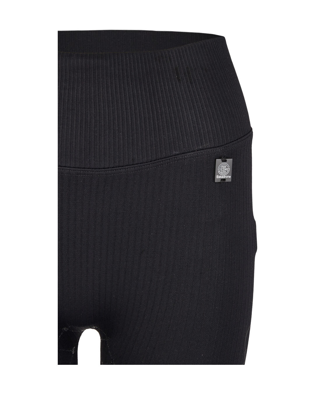 Die Leggings sind nahezu nahtlos konstruiert, was das Risiko von Reibung und Irritationen minimiert und sie zu einem idealen Begleiter für lange Tage im Sattel macht. Der hohe, unterstützende Bund läuft hinten spitz zu und ist mit einer stilvollen Eskadron-Einwebung versehen, die sowohl für einen sicheren Sitz als auch für einen schmeichelhaften Look sorgt.