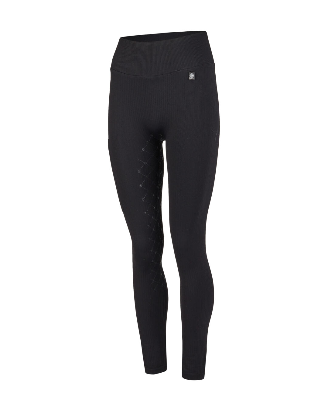 Gefertigt aus hochwertigem Polyamid mit 4-Way Stretch Ripp-Qualität, passen sich diese Leggings deinen Bewegungen an und sorgen für uneingeschränkte Flexibilität. Das atmungsaktive Material gewährleistet dabei, dass du auch bei intensiven Reiteinheiten stets einen angenehmen Tragekomfort genießt.