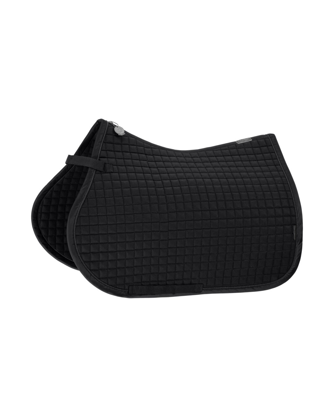 Das Obermaterial aus Baumwolle sorgt für eine angenehme Haptik. Innen überzeugt eine weiche Molton-Unterseite, die Feuchtigkeit gut aufnimmt und gleichzeitig hautfreundlich ist – perfekt für empfindliche Pferderücken. Die kompakte Füllung mit robuster Steppung bietet ausreichend Polsterung und bleibt auch nach vielen Waschgängen formstabil. Die Schabracke liegt flach und sauber am Pferd – nichts verrutscht, nichts drückt.