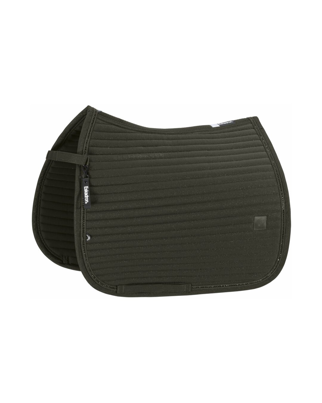 Das funkelnde Obermaterial bringt dezenten Glamour in den Stall, während die Cool-Dry Unterseite für atmungsaktiven Komfort sorgt. Die kompakte Quersteppung mit mitteldicker Füllung liegt formstabil unter dem Sattel und bietet eine angenehme Polsterung, ohne aufzutragen.