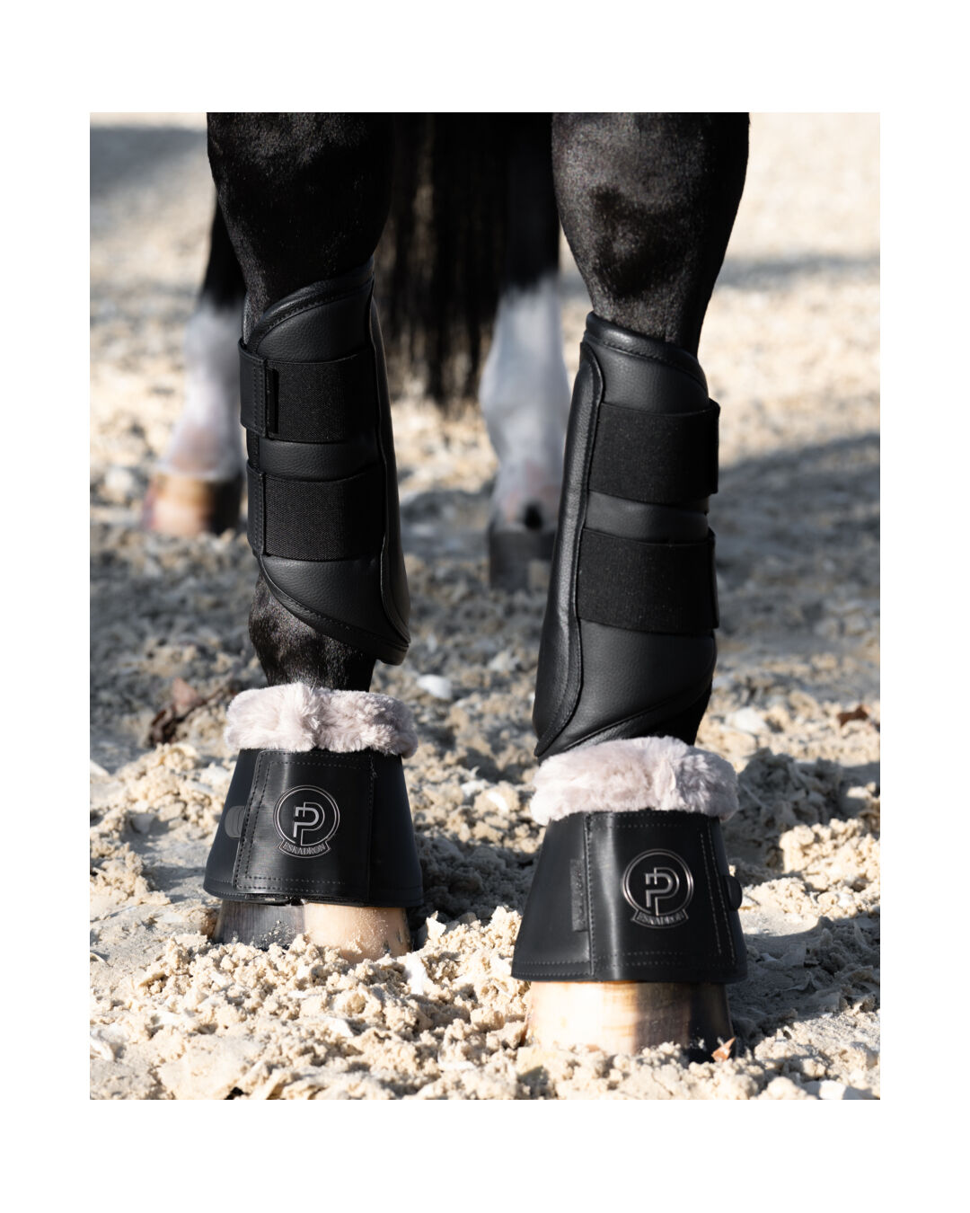 Der weiche Soft-Neopren-Abschluss schmiegt sich angenehm ans Pferdebein und verhindert Scheuerstellen. Verschlossen wird die Glocke mit einem breiten Klettverschluss aus Kunstleder – inklusive geprägtem Platinum-Emblem für den edlen Feinschliff.