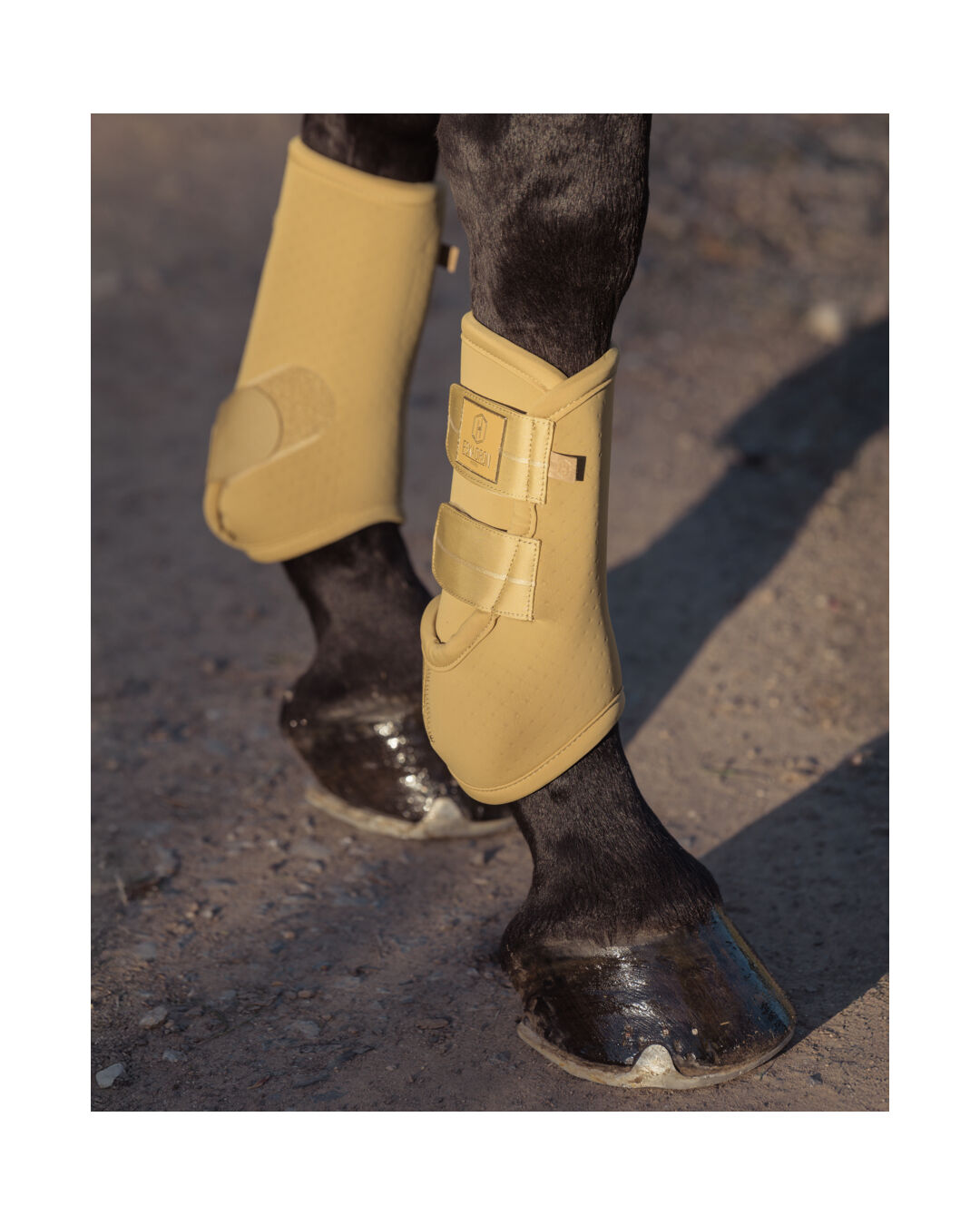 Eine gezielte Aussparung im Bereich des Fesselgelenks ermöglicht natürliche Bewegungen, ohne den Schutz zu beeinträchtigen – optimal für anspruchsvolle Dressurarbeit. Das elastische Einfassband folgt dem Bewegungsablauf deines Pferdes und sorgt für eine komfortable, stabile Passform.