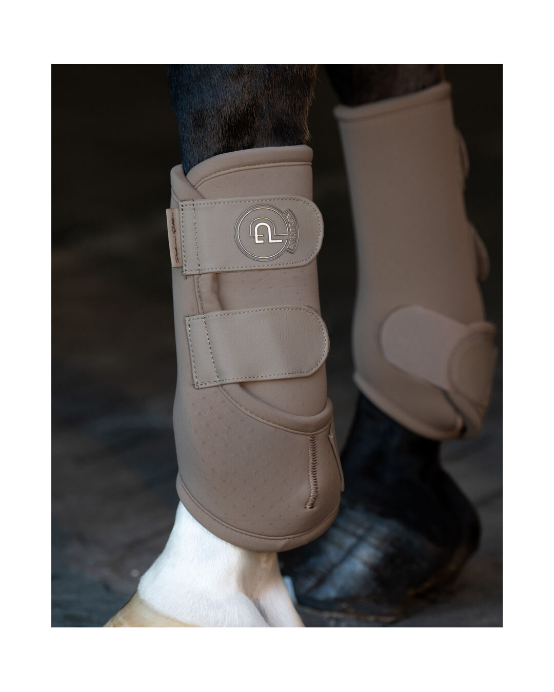 Gefertigt aus atmungsaktivem, gelochtem Neopren, bieten die Gamaschen eine hervorragende Luftzirkulation. Die anatomisch optimierte Passform mit 360° Rundumschutz stabilisiert das Bein zuverlässig und schützt effektiv vor Stößen und Druckstellen – ohne die Bewegungsfreiheit einzuschränken. Besonders clever: Die gezielte Aussparung am Fesselgelenk erlaubt uneingeschränkte Beweglichkeit und unterstützt damit den natürlichen Bewegungsablauf deines Pferdes.