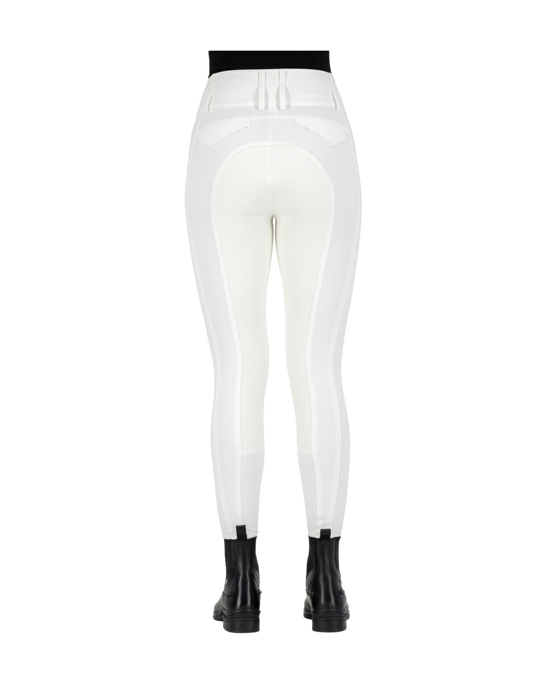 Die Hose ist mit dem innovativen GripConnect ausgestattet, das für die ultimative Verbindung im Sattel entwickelt wurde. Zwei Fake-Pattentaschen auf der Rückseite, ebenfalls mit Strasssteinen verziert, runden das stilvolle Erscheinungsbild ab.
