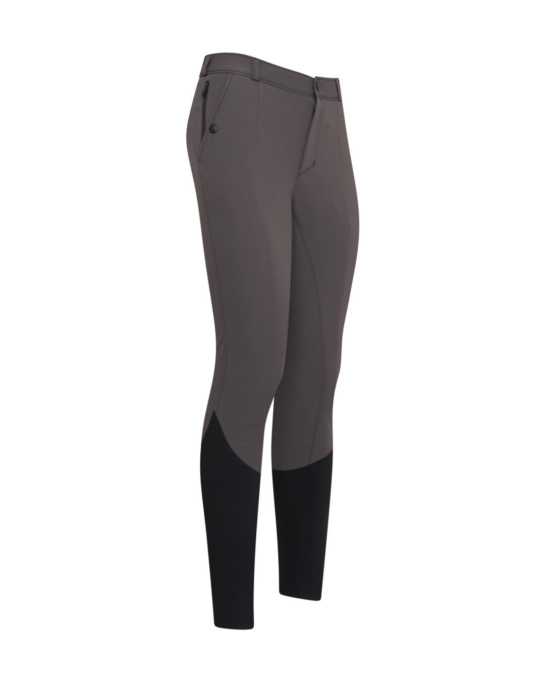 Die modische Chino-Reithose ist aus einem komfortablen 4-Wege-Strechmaterial gefertigt und mit einem mittelhohen Hosenbund versehen. Diese Reithose bietet dir perfekte Unterstützung im und außerhalb des Sattels. Insgesamt hast du ganze fünf Möglichkeiten, um Dinge zu verstauen: Zwei Vordertaschen und eine Gesäßtasche lassen sich mit einem Druckknopf verschließen. Die fünfte kontrastfarbene Tasche ist vorne rechts platziert und kann mit einem Reißverschluss verschlossen werden.