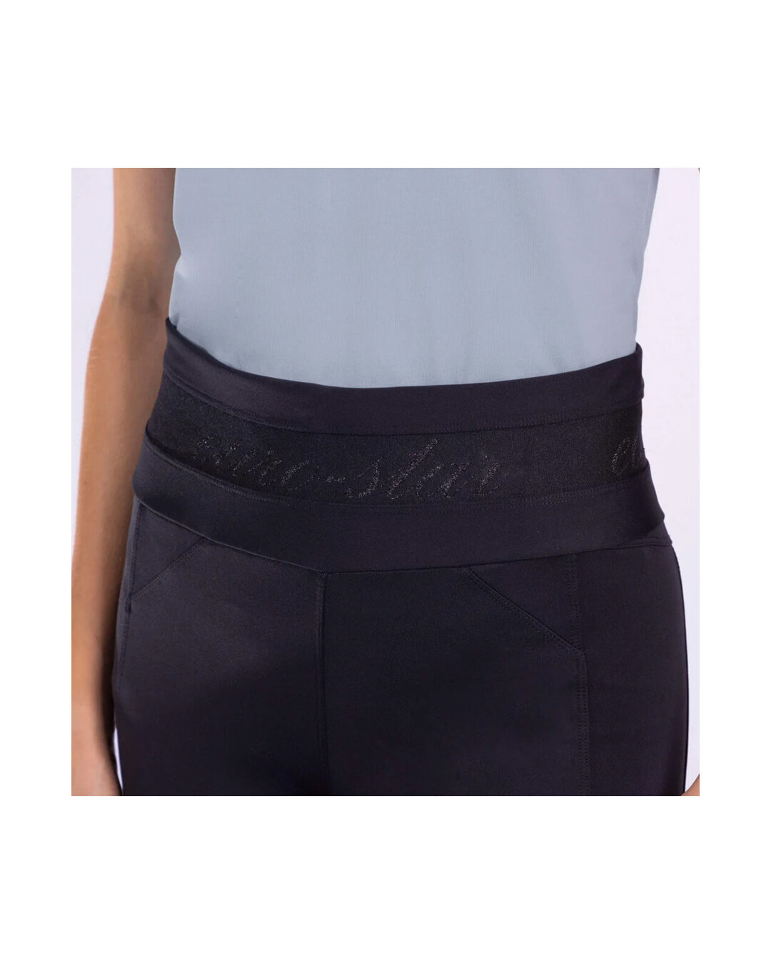 Entlang der Taille befindet sich ein Logo-Gummiband mit metallischem Garn. Zu einem echten Hingucker wird die Reitleggings durch das Strass-Logo auf dem linken Bein. Zum Verstauen von wichtigen Utensilien dient eine Handytasche auf beiden Seiten.