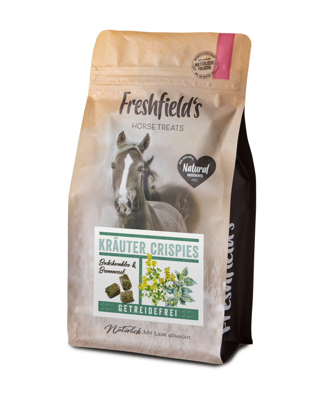 Entdecke die Leckerlis Kräuter Crispies von Freshfield's – eine natürliche und köstliche Belohnung, die dein Pferd lieben wird.