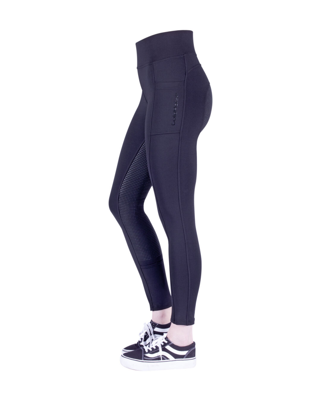 Die besonders komfortable Leggings aus sehr elastischem Material ist mit einem Vollgrip-Besatz versehen, verfügt über eine seitliche Handy-Einschubtasche und gewährleistet besonders hohen Tragekomfort durch den breiten, elastischen Hochbund und flexible Beinabschlüsse. Zudem überzeugt die Reitleggings durch ein sehr gutes Preis-Leistungs-Verhältnis.