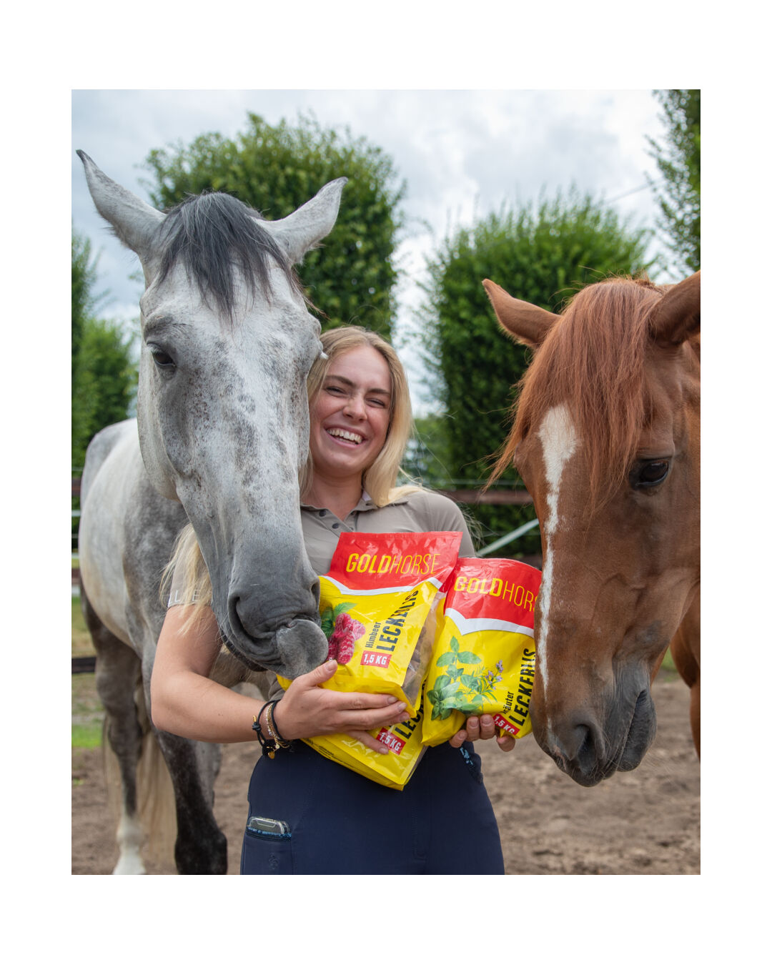 Wenn du deinem Pferd eine gesunde und schmackhafte Freude machen willst, sind die Leckerlis von GOLDHORSE genau das Richtige für euch.