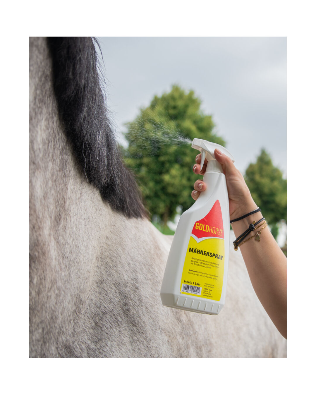 Das GOLDHORSE Mähnenspray ist ein unverzichtbares Pflegemittel für Pferde, das speziell dafür entwickelt wurde, sowohl das Fell als auch das Langhaar deines Pferdes zu pflegen.