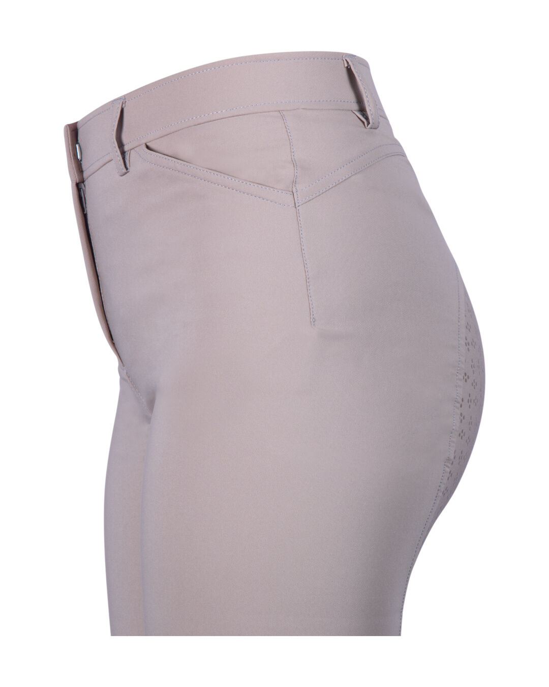 Die Reithose bietet einen hohen Tragekomfort durch den schmeichelnden Schnitt, flexible Beinabschlüsse und den Vollbesatzgrip ohne abgesetzte Naht an der Beininnenseite. Ein weiteres praktisches Detail sind die dezenten Einschubtaschen vorne und die Gürtelschlaufen der Reithose. Zudem überzeugt diese Hose durch ihren angenehmen, bequemen und pflegeleichten Stoff.