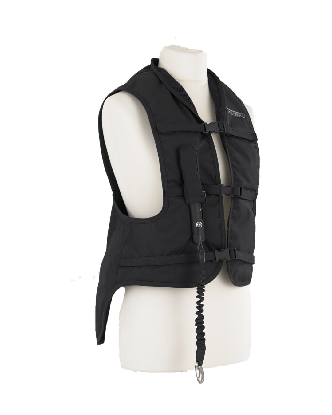 Die Weste ist leicht, kompakt und langlebig. Sie schützt wichtige Körperpartien wie Hals, Wirbelsäule, Brustkorb, Becken, Steißbein, Kopf, Schlüsselbein und innere Organe mit einem Schutzvolumen von bis zu 28 Litern (je nach Größe). Im Falle eines Sturzes wird der gesamte Oberkörper stabilisiert und gegen Verdrehungen geschützt. Die Auslösung erfolgt mechanisch über eine Reißleine, die sicher am Sattel befestigt wird.