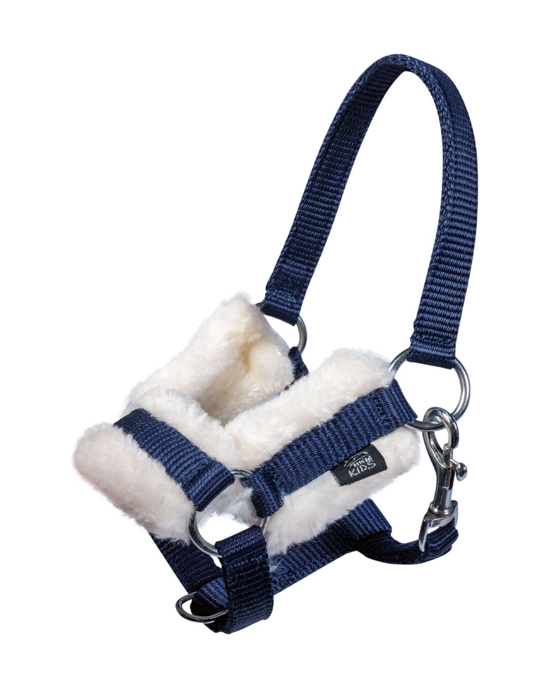 Das Halfter ist mit einem praktischen Karabinerhaken ausgestattet, der ein einfaches An- und Ablegen ermöglicht. Der dazugehörige Führstrick ergänzt das Halfter perfekt und bietet eine sichere Handhabung beim Führen deines Steckenpferds.