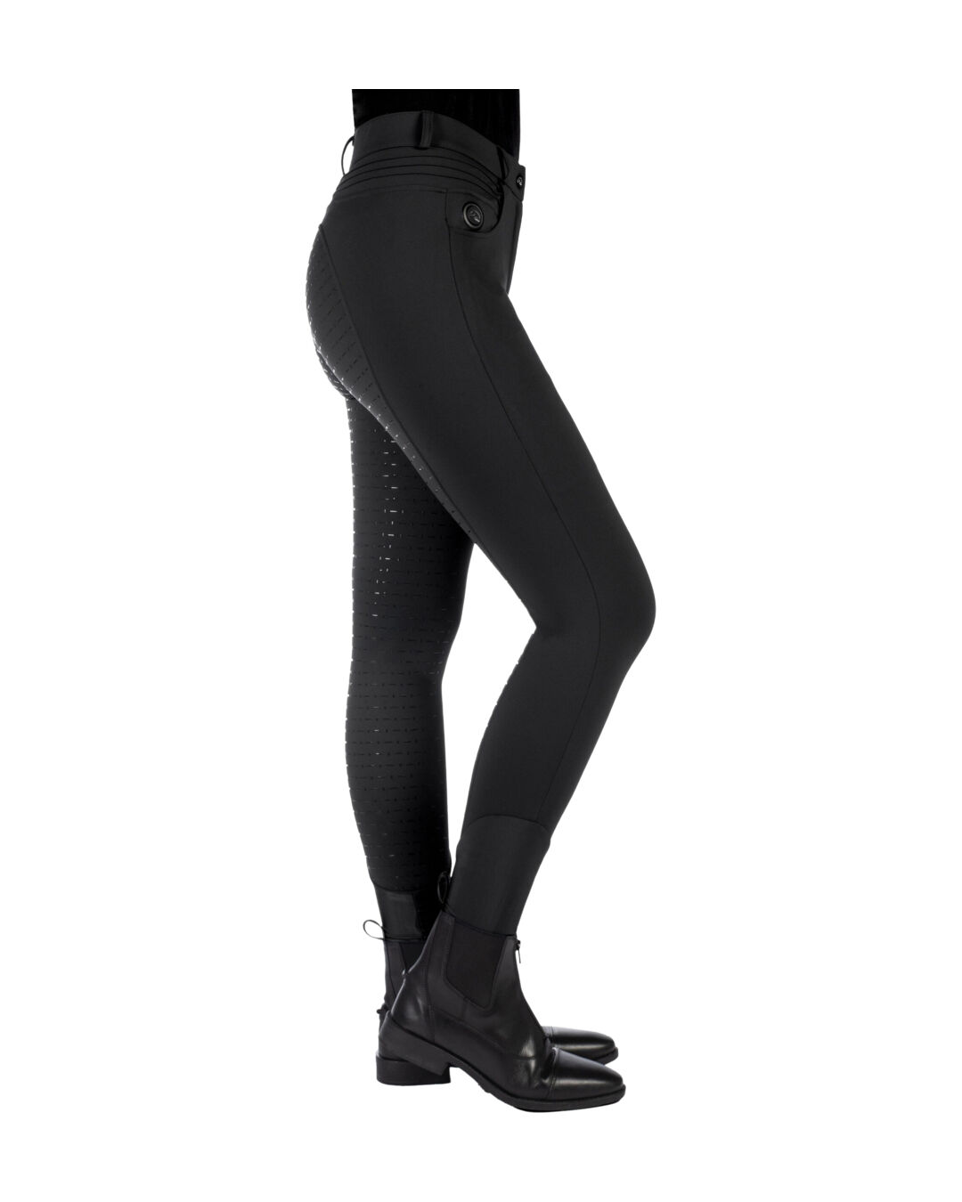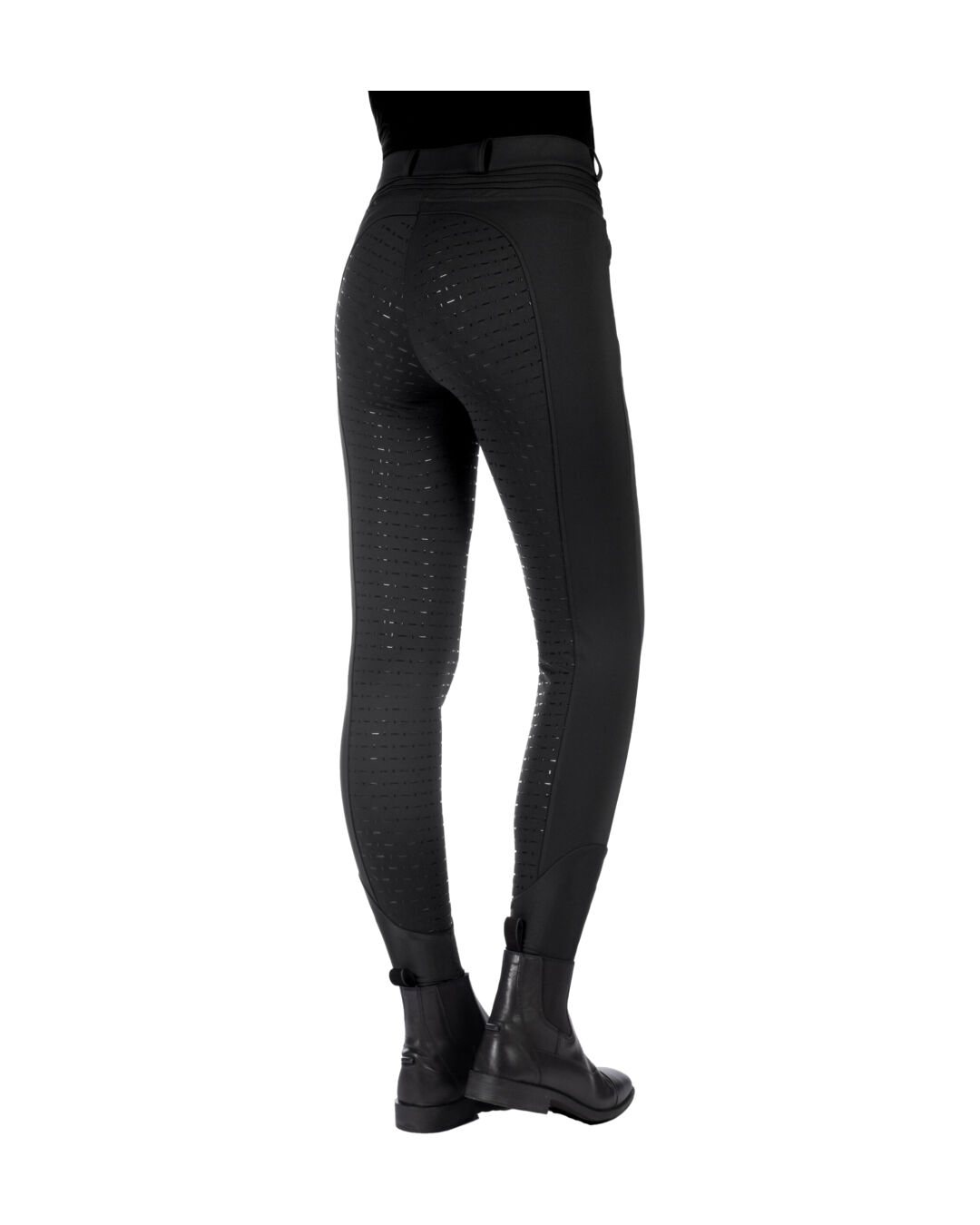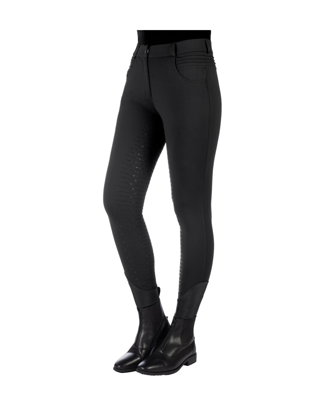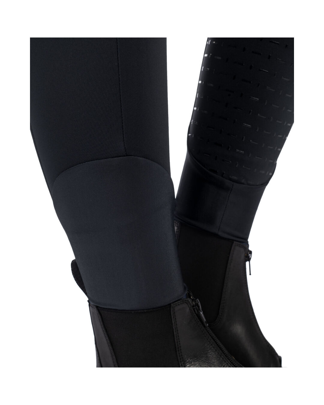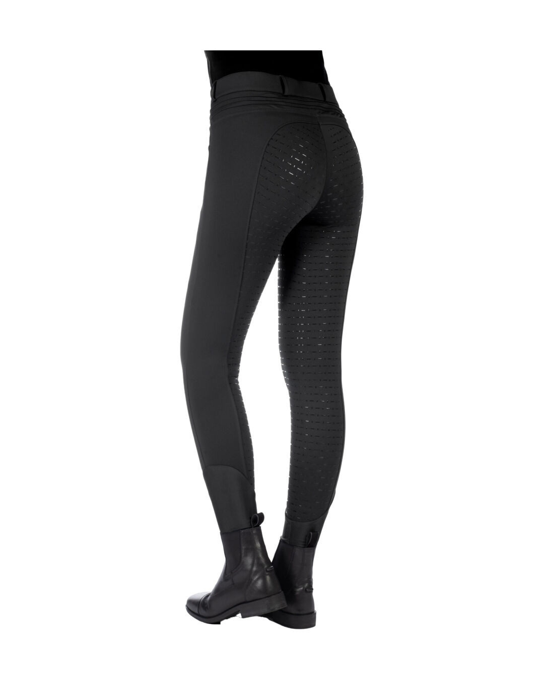 Der Silikon-Vollbesatz bietet optimalen Halt im Sattel, und die zwei Fronttaschen sind praktisch für Kleinigkeiten, die du unterwegs benötigst. Diese Reithose kombiniert funktionale Details und innovative Technologie und ist damit dein idealer Begleiter für kalte Wintertage im Stall und beim Reiten.