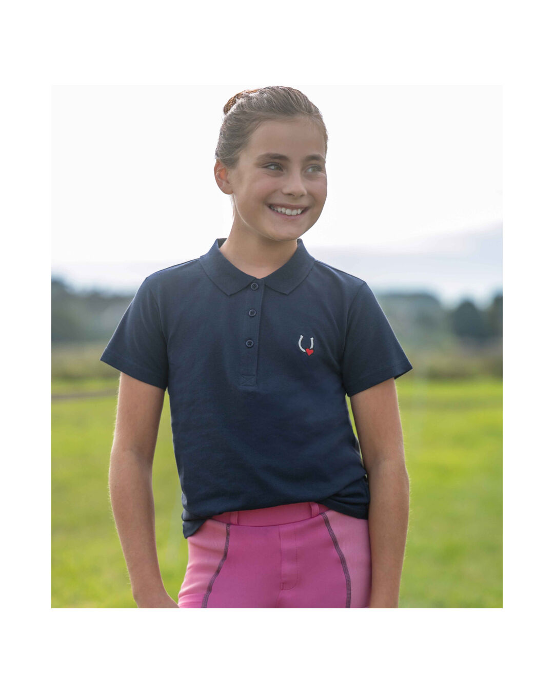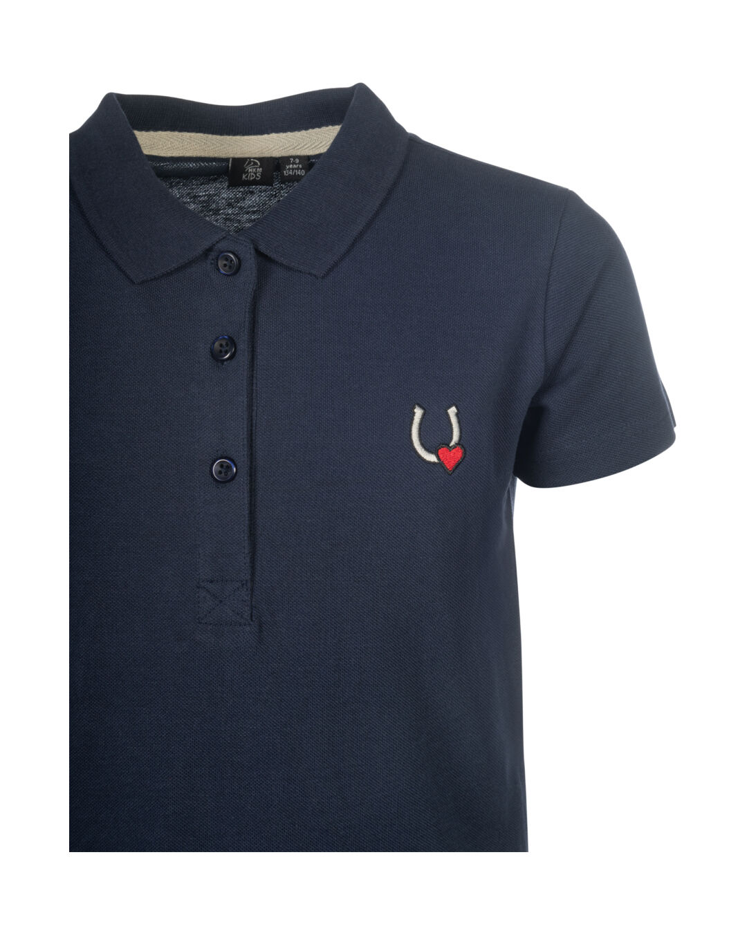 Der klassische Polokragen und die Knopfleiste vorne verleihen ihm eine elegante Note, während das Herzchenmotiv für einen verspielten Akzent sorgt.