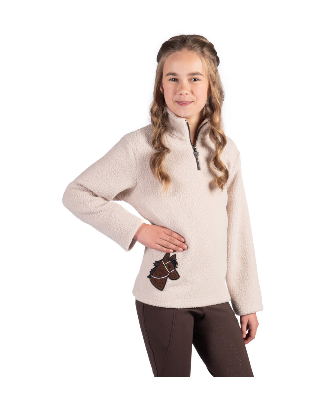 Der Pullover Mia von HKM Kids ist kuschelig warm und genau das Richtige für kleine Pferdefans.