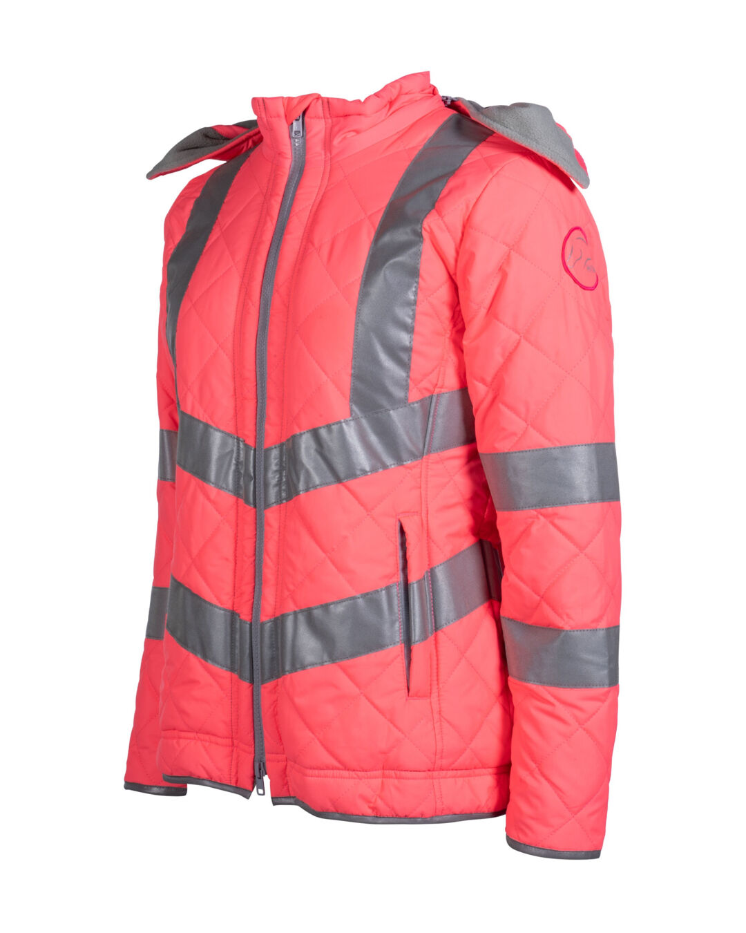 Dank der auffälligen Farbe und den reflektierenden Streifen an Vorderseite, Rückseite und Ärmeln wirst du auch aus größerer Entfernung schneller wahrgenommen. Die leichte Wattierung in Stepp-Optik und das winddichte Obermaterial bieten zuverlässigen Schutz bei kühlerem Wetter. Der Zwei-Wege-Reißverschluss ermöglicht dir volle Bewegungsfreiheit, ideal auch beim Reiten. Praktische Details wie die Innentasche und zwei Reißverschluss-Außentaschen bieten ausreichend Platz für alles Wichtige. Eine abnehmbare Kapuze rundet die Funktionalität der Jacke ab.