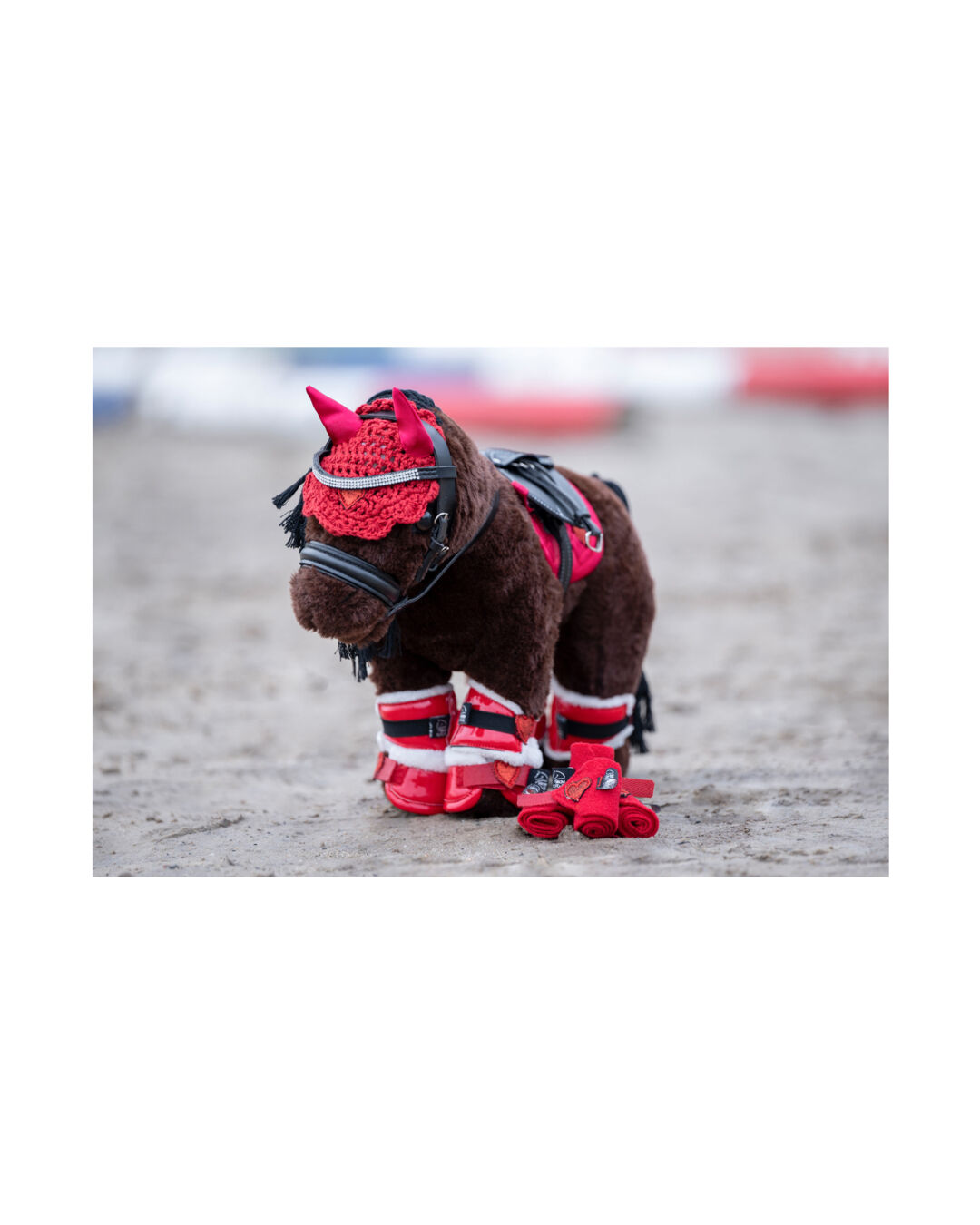 Die Miniaturversionen der echten Pferdeprodukte sind detailgetreu und bieten ein realistisches Reiterlebnis. Das Set besteht aus einer Schabracke, Fliegenhaube, Bandagen, Gamaschen und Hufglocken – alles was du brauchst, um dein Cuddle Pony auszustatten. Das Material besteht zu 100% aus Polyester und ist maschinenwaschbar bei 30 Grad, was eine einfache Reinigung ermöglicht. Die hochwertige Verarbeitung sorgt dafür, dass das Set langlebig und strapazierfähig ist. Mit dem Reitset Starter Cuddle Pony von HKM hast du alles, was du brauchst, um dein Cuddle Pony stilvoll auszustatten und ein realistisches Reiterlebnis zu genießen.