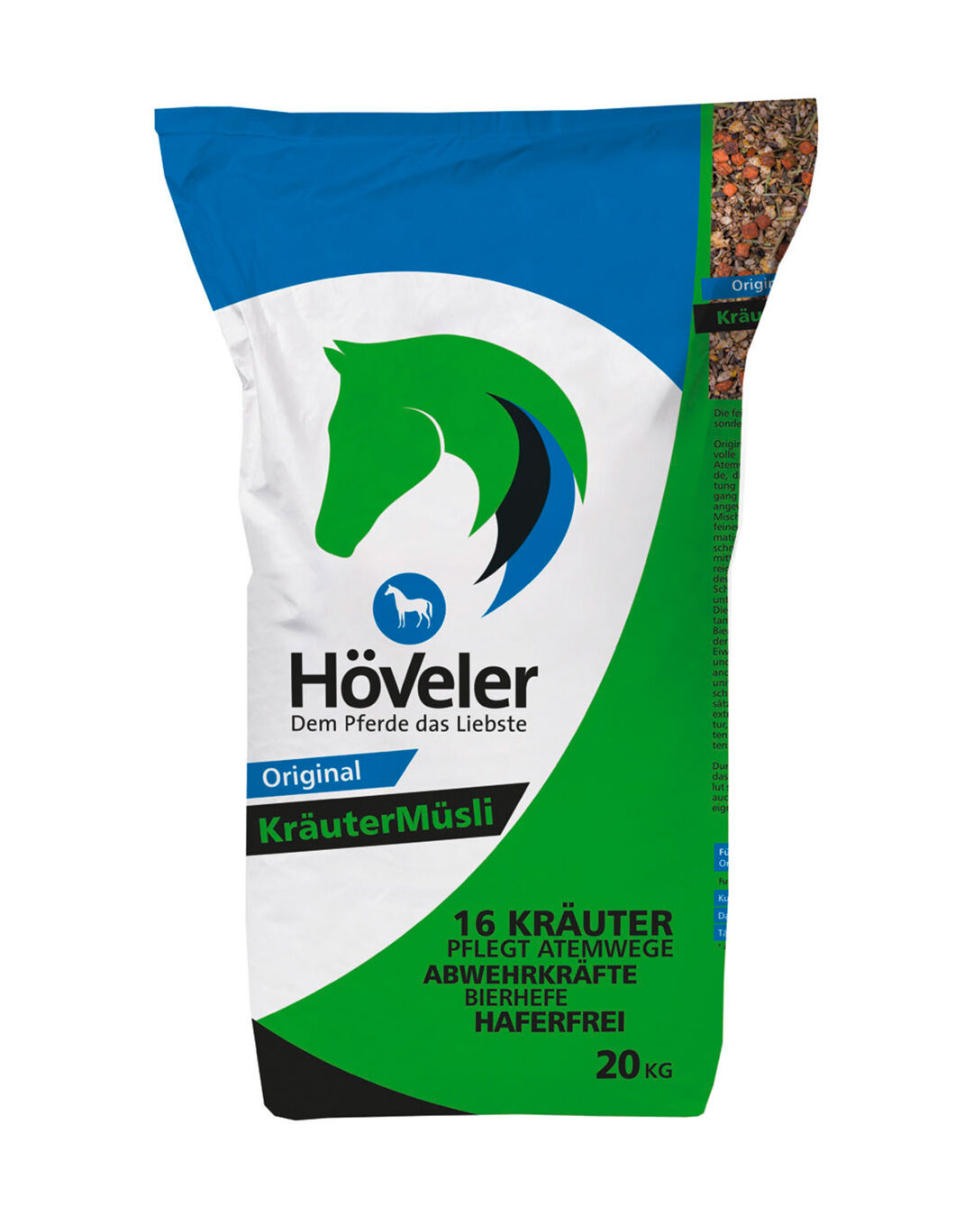 Die feine Mischung macht das Original Höveler KräuterMüsli so besonders. Es ist eine sinnvolle Ergänzung für Pferde mit empfindlichen Atemwegen sowie für Pferde, die ausschließlich auf Stallhaltung oder gelegentlichen Weidegang auf kräuterarmen Weiden angewiesen sind.