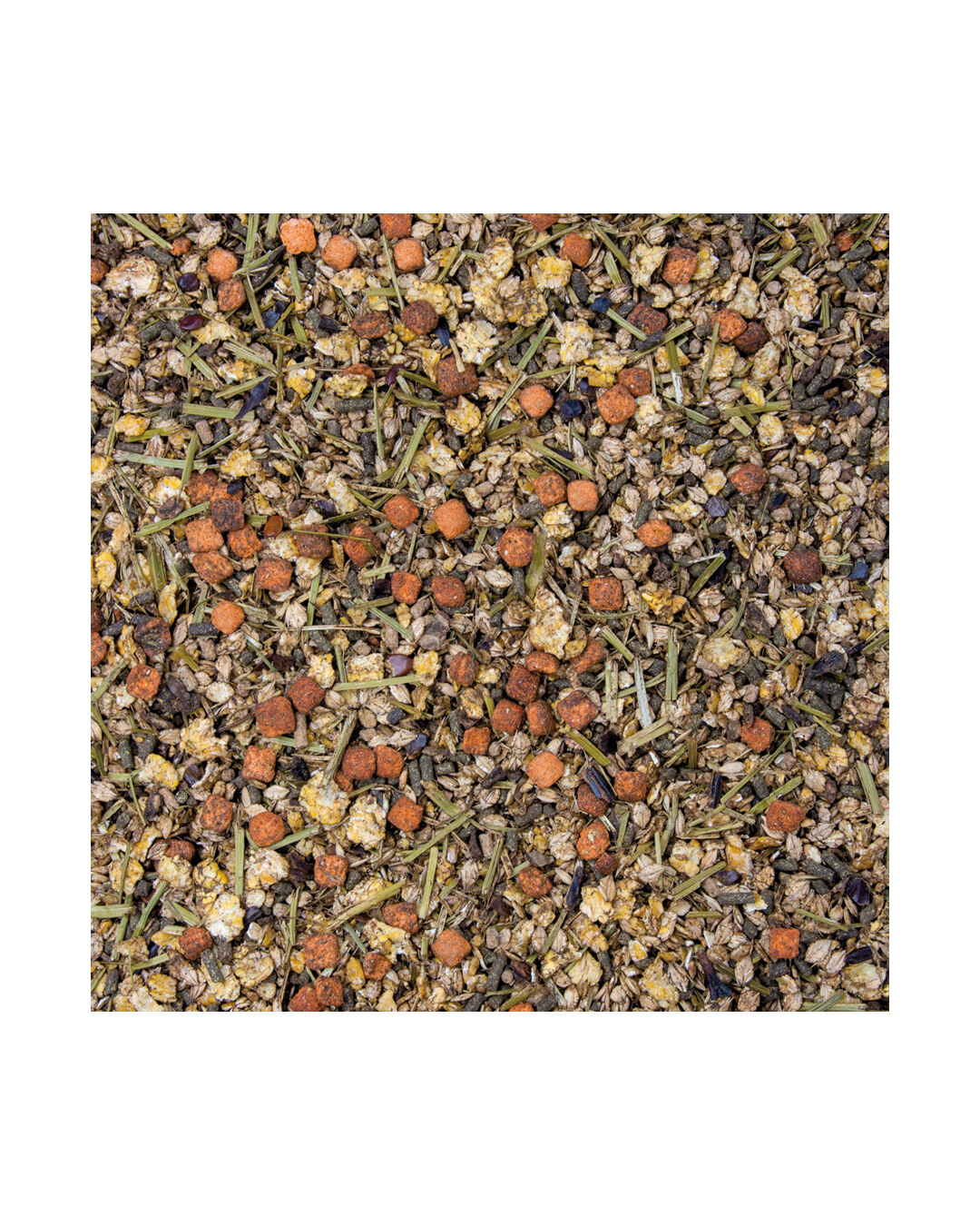 Die ausgesuchte Mischung aus Naturkräutern verfeinert den Müsli-Mix zu einem aromatisch duftenden und besonders schmackhaften Ergänzungsfutter, das die körpereigenen Abwehrkräfte deines Pferdes stärkt und die Funktion der Schleimhäute in den Atemwegen unterstützt. Die Versorgung der Pferde mit B-Vitaminen wird über den Zusatz von Bierhefe positiv unterstützt. Moderate Gehalte an verdaulichem Eiweiß und verdaulicher Energie und deren enges Verhältnis zueinander machen das Müsli zu einer universellen Beilage zu den unterschiedlichsten Rationen.