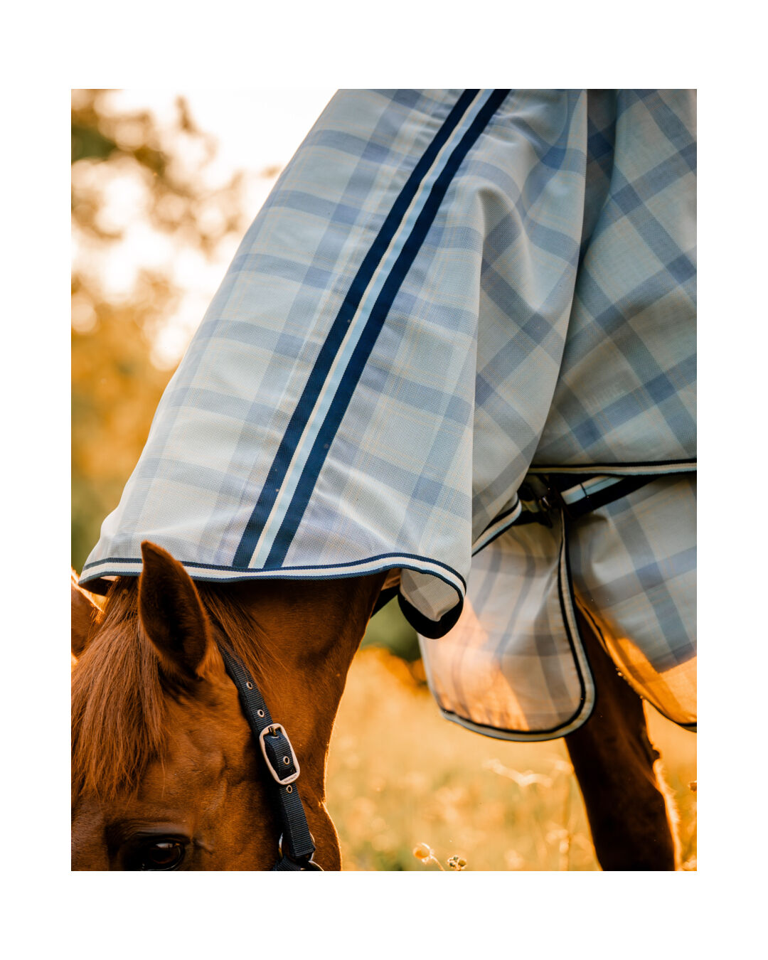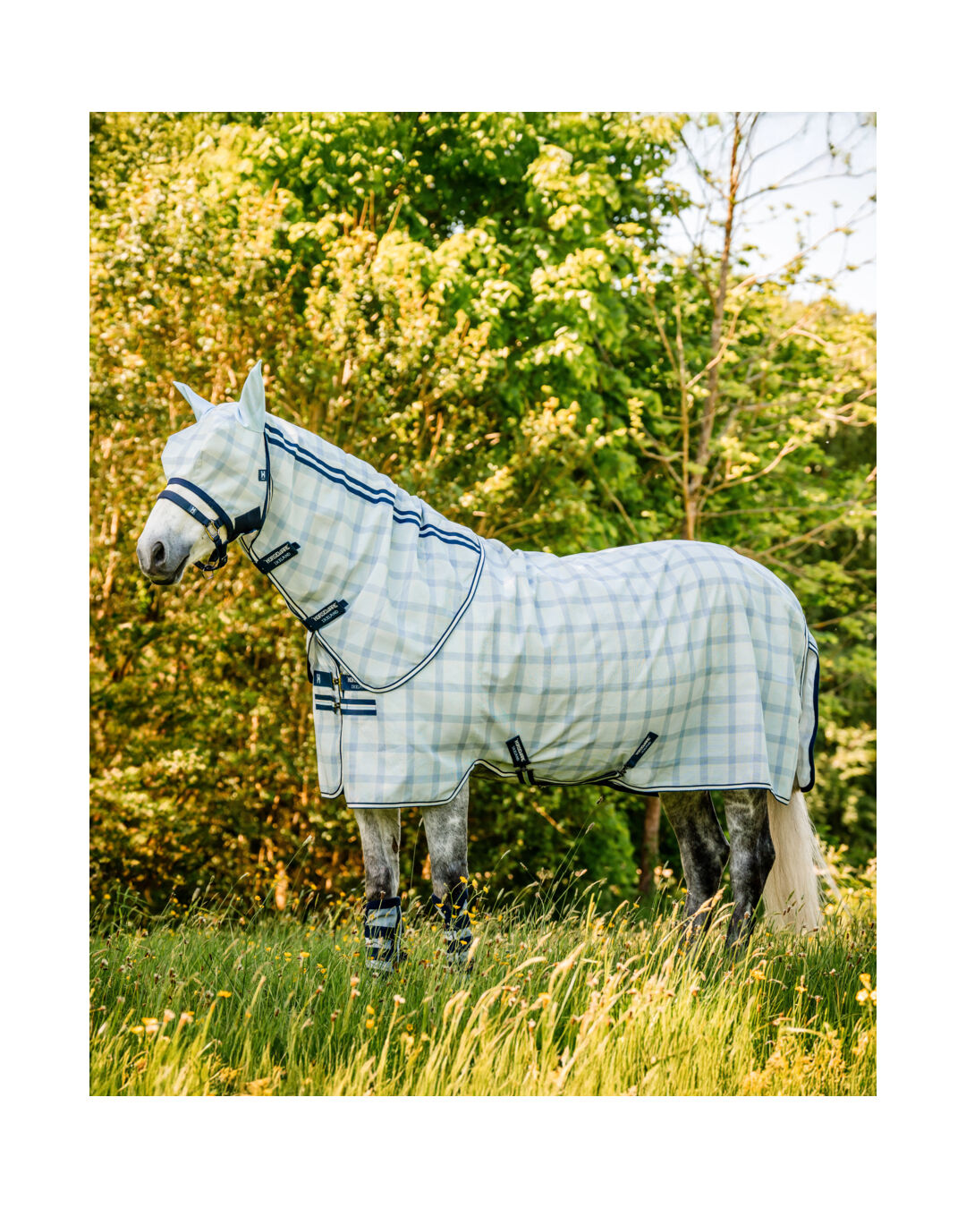 Die Fliegendecke Newmarket Plus von Horseware kommt mit einem abnehmbare Halsteil und kombiniert zeitlosen Stil mit moderner Funktionalität sowie optimalem Schutz an warmen Tagen.