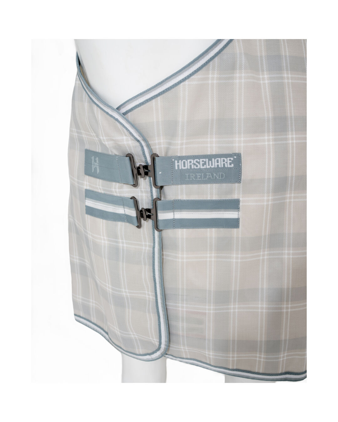 Die Fliegendecke Newmarket Plus von Horseware kommt mit einem abnehmbare Halsteil und kombiniert zeitlosen Stil mit moderner Funktionalität sowie optimalem Schutz an warmen Tagen.