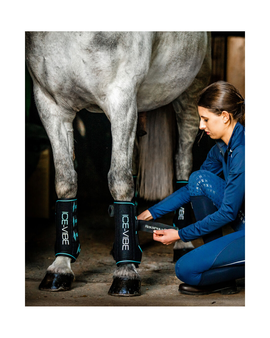 Die Vibrations- & Kühlgamaschen Ice-Vibe Leg Wraps 2.0 von Horseware bringen bewährte Therapie und smartes Update zusammen – ideal für alle, die mehr für die Regeneration und Vorbereitung ihrer Pferdebeine tun wollen.