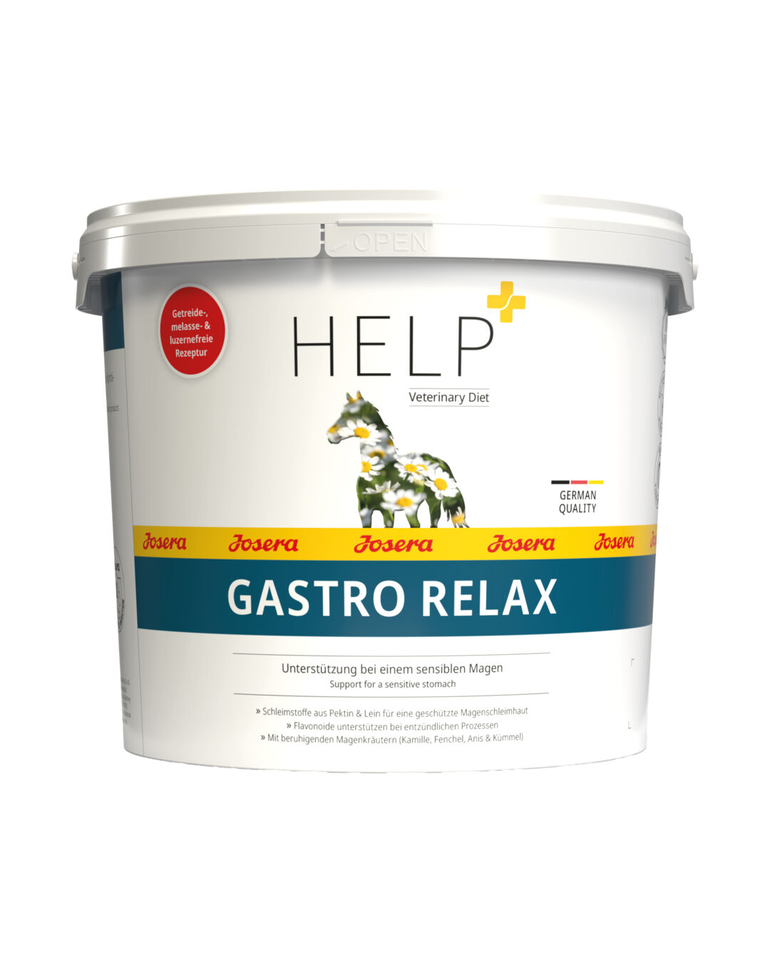 Mit Help GastroRelax von Josera bringst du gezielte Unterstützung in die Krippe – speziell für Pferde mit empfindlichem Magen. Ob stressbedingt, durch Fütterungsfehler oder sportliche Belastung: Viele Pferde leiden unter Magenschleimhautreizungen, die sich in Unwohlsein, Appetitlosigkeit oder Leistungseinbußen zeigen. Josera Help GastroRelax vereint drei funktionelle Wirkprinzipien – ohne Getreide, ohne Luzerne und ganz ohne Melasse.