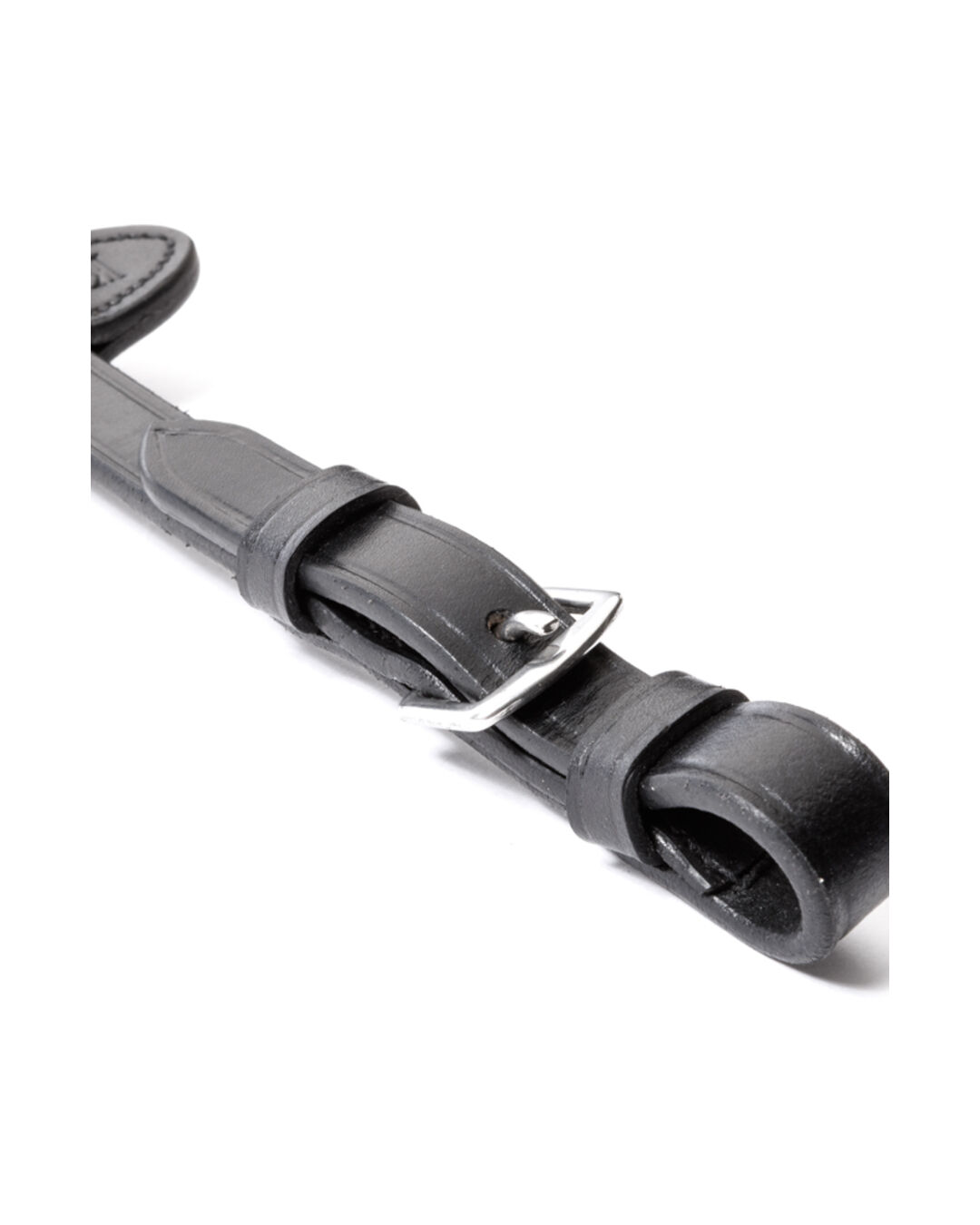 Die Zügel sind in einer schmalen Ausführung von 16 mm erhältlich und verfügen über ein Ledervorderteil mit Schnalle und Martingalschieber. Das ermöglicht eine einfache und sichere Befestigung sowie eine präzise Zügelführung. Die Gurtzügel sind in drei Größen erhältlich: Pony (125 cm), Warmblut (140 cm) und Warmblut Extra (160 cm), sodass du die passende Größe für dein Pferd wählen kannst.