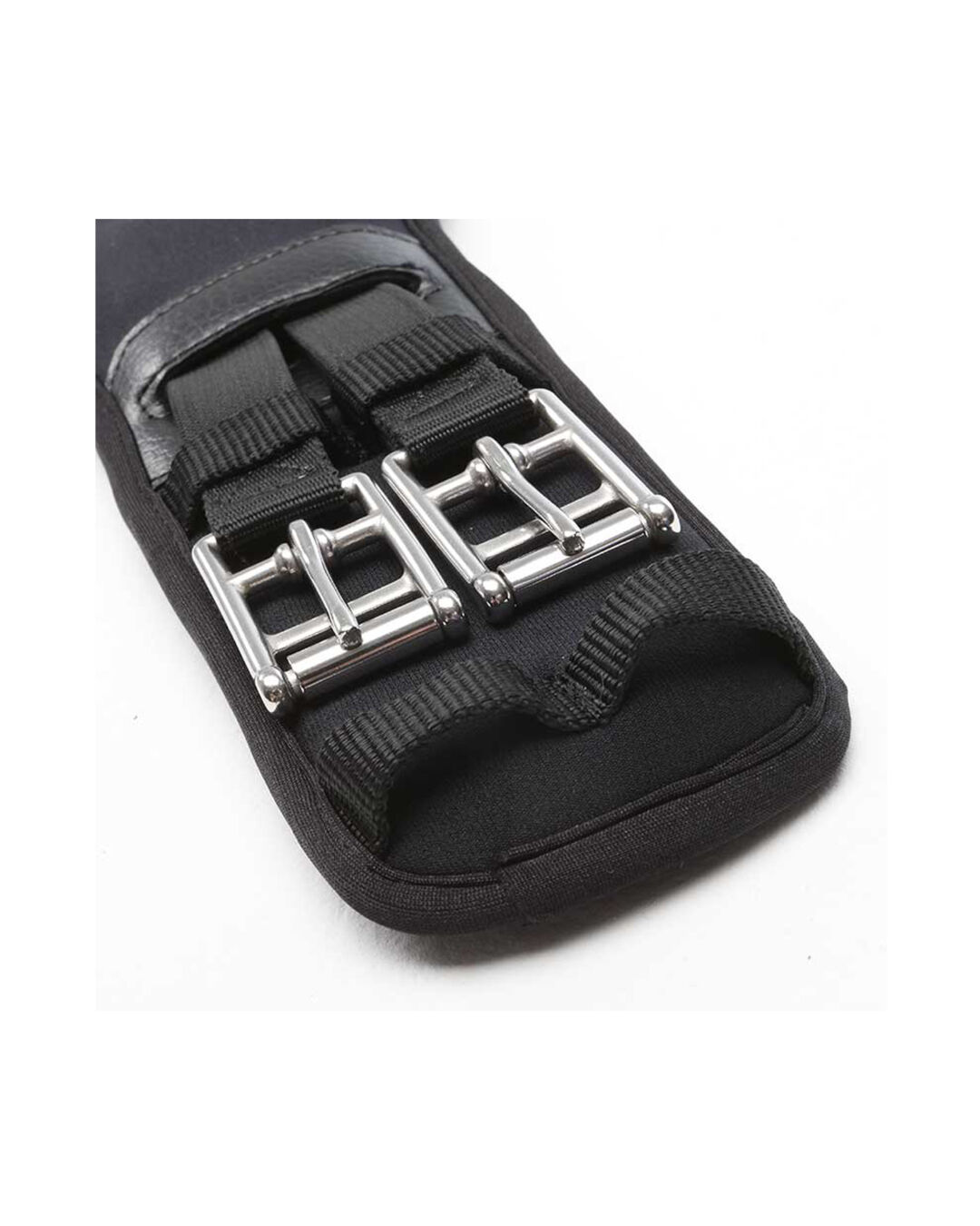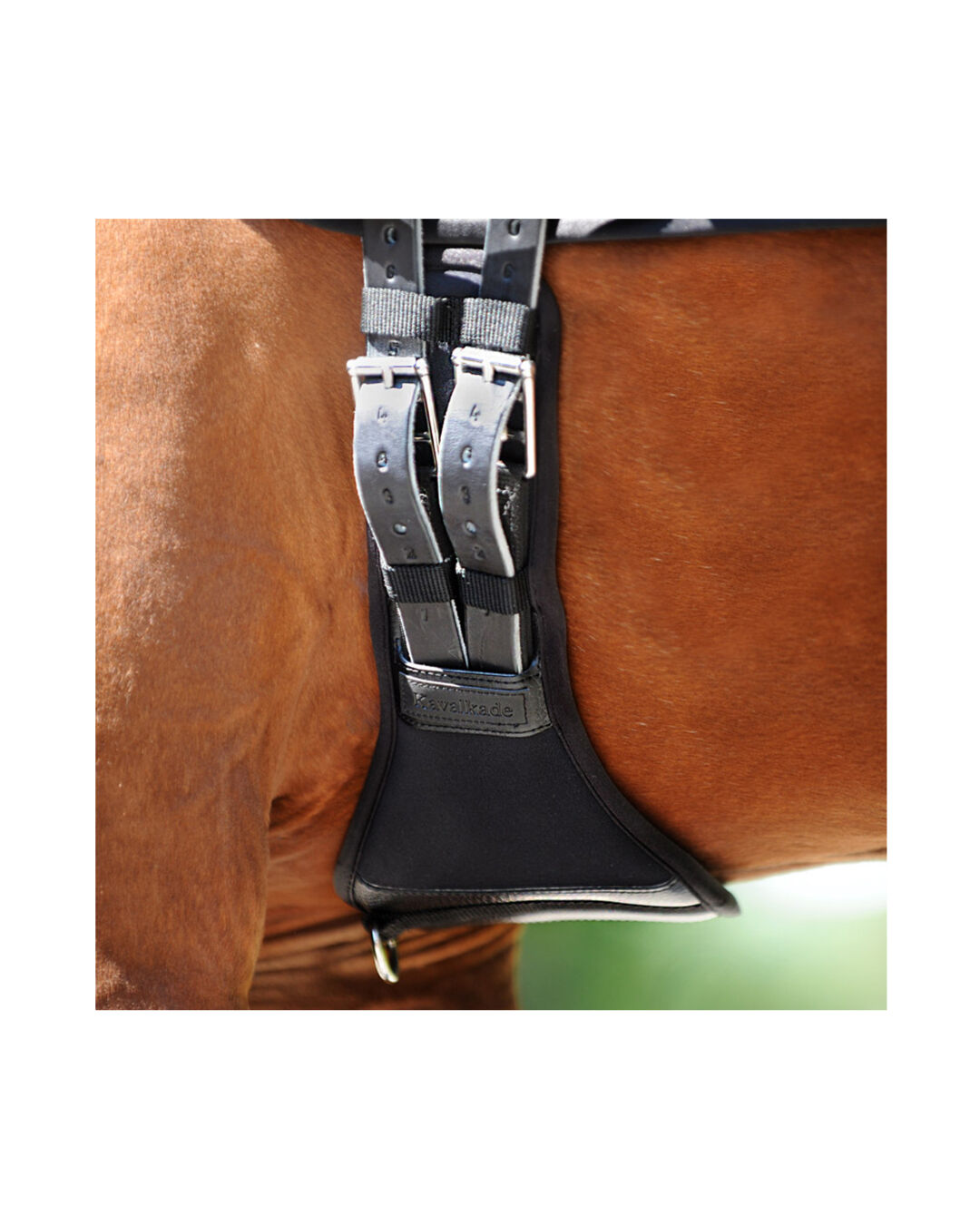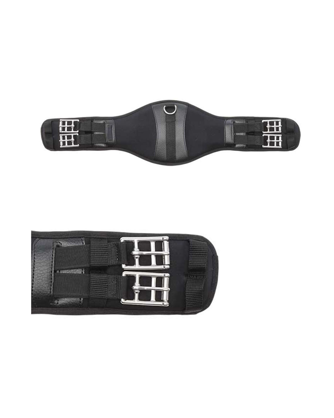 Aus weichem Memory Foam-Material mit verbreiterter Bauchplatte, welches sich optimal an die Gurtlage des Pferdes anpasst und nach Gebrauch in seine Ursprungsform zurückkehrt. Mit D-Ring in der Mitte aus rostfreiem Edelstahl. Kurzgurt mit Elast.