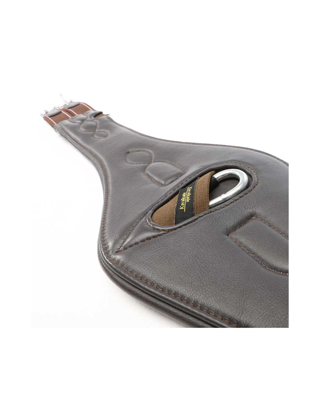 Dank seiner extra breiten Auflagefläche im Mittelteil wird der Druck besonders gut verteilt, was deinem Pferd spürbare Erleichterung beim Gurten verschafft. Die dreifachen Elastzonen an beiden Enden unterstützen die Flexibilität und machen das Nachgurten angenehmer. Schicke Ziernähte und die rundum weiche Polsterung runden das Design ab. Drei D-Ringe bieten dir praktische Befestigungsmöglichkeiten für Hilfszügel oder Vorderzeuge.