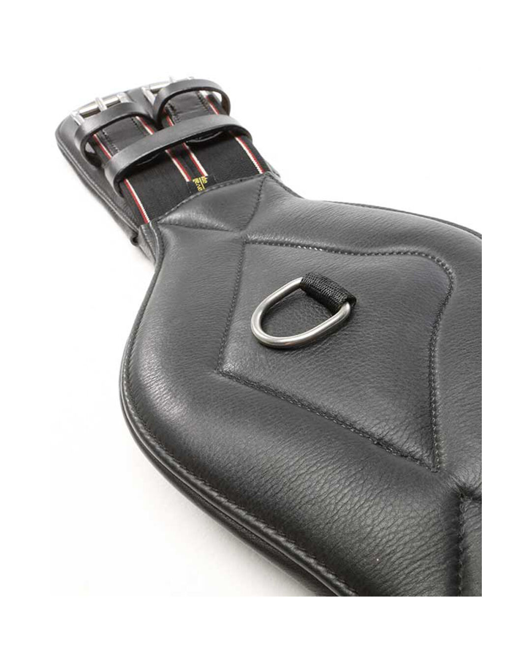 Der Softledergurt besteht aus einem starken und stabilen Nylonband, was die Formstabilität des Gurtes garantiert. Rundherum ist ein weiches Leder um den Gurt verarbeitet, das für die Langlebigkeit und den Tragekomfort sorgt. Die besonders breite Brustplatte verteilt den Druck gut – besonders für Pferde, die auf Druck oder gar Gurtzwang reagieren, eine gute Möglichkeit.