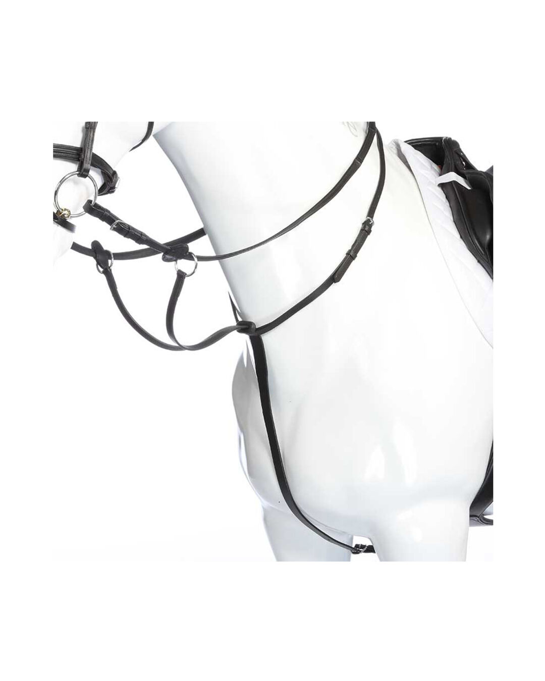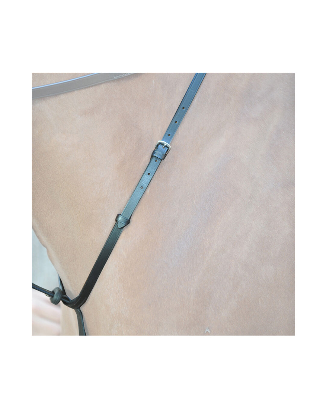 Das Kavalkade Martingal mit Gummistopper macht auf den ersten Blick einen sehr guten Eindruck. Es handelt sich um ein klassisches Martingal aus Leder mit einem Gummistopper an der Gabel. Das Leder ist weich und geschmeidig, die Beschläge und Schnallen wirken stabil, alles gut ge- und verarbeitet. Der Halsring lässt sich in der Größe beliebig einstellen. Bei einem durchschnittlichen Warmblut konnte ich das dritte Loch verwenden, somit ist noch genügend Spielraum, es größer oder kleiner zu
