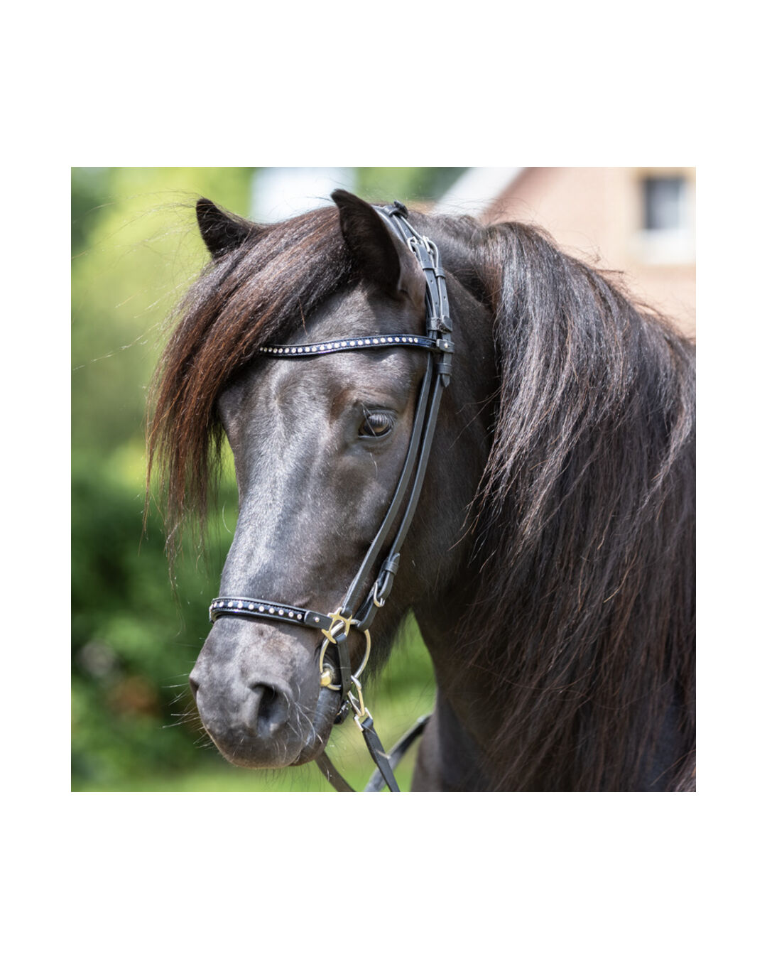 Dieses Nasenstück ermöglicht es dir, das Aussehen deiner Trense schnell und einfach zu verändern, ohne die gesamte Trense auseinanderbauen zu müssen. "Glansandi" hebt sich durch sein ansprechendes Design in Schwarz-Lack mit funkelnden weißen Strasssteinen hervor, das sowohl Stil als auch einen Hauch von Luxus in die Ausstattung Ihres Pferdes bringt.