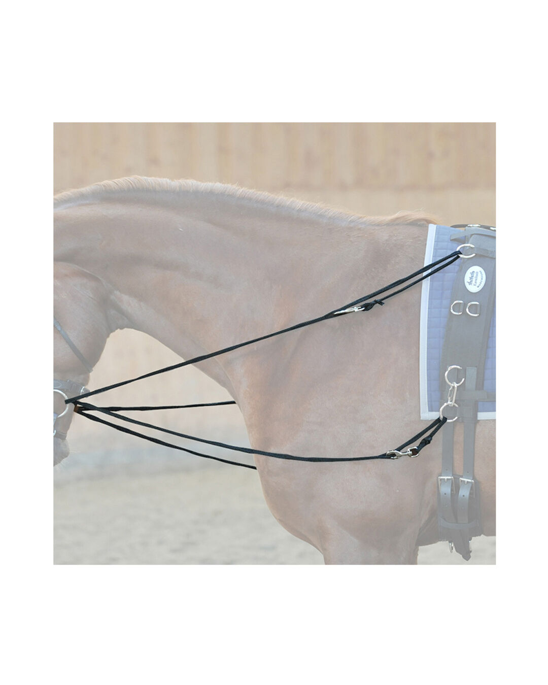 Die Phillipszügel sind praktische Hilfszügel aus einer Perlonschnur, mit Karabinerhaken und Schlaufen zur individuellen Längeneinstellung.