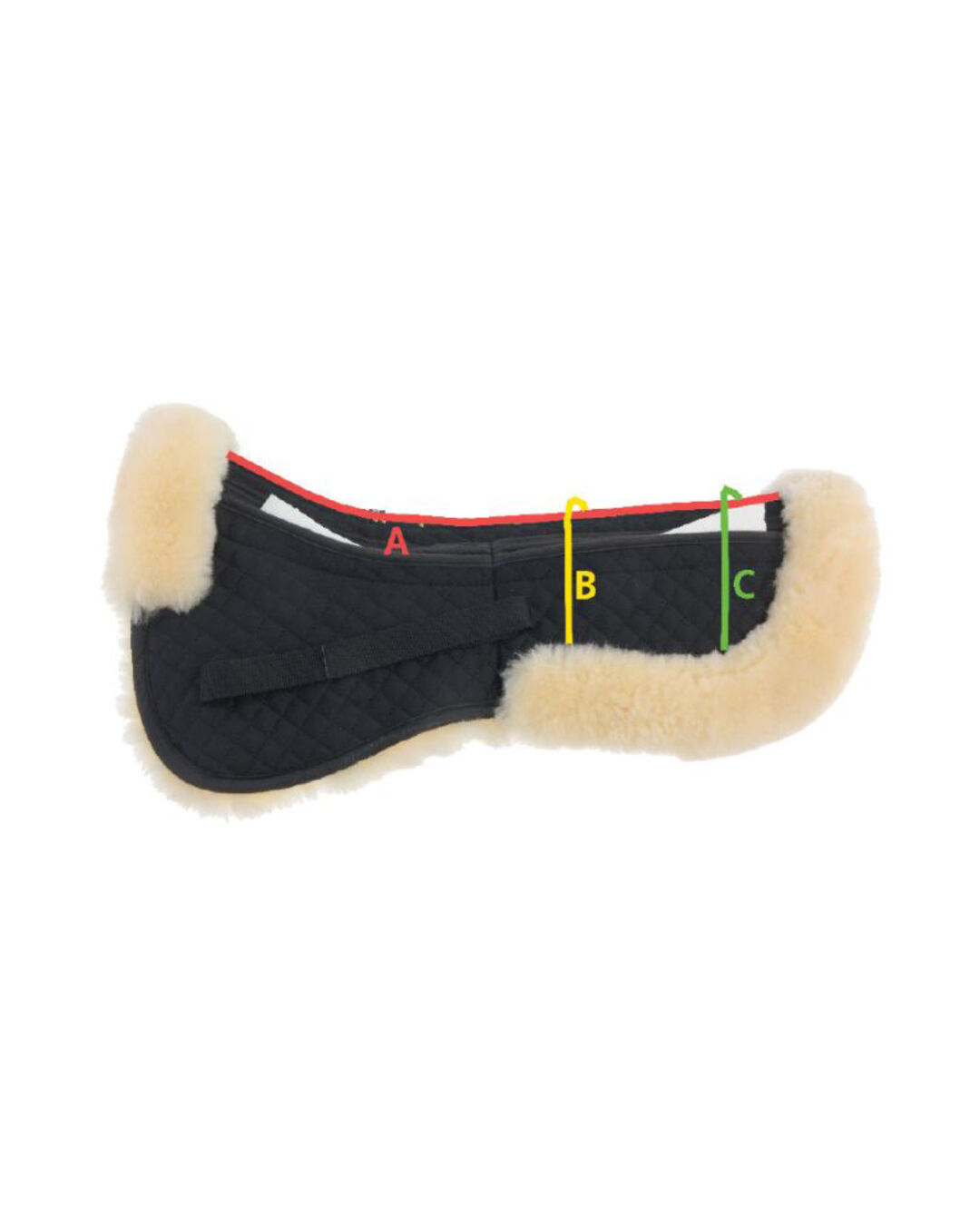Gefertigt aus medizinischem Lammfell, ist dieses Pad nicht nur antiallergisch und antiseptisch, sondern fördert auch die Durchblutung in den Muskeln des Pferdes. Das natürliche Lammfell sorgt für eine sanfte Massage des Pferderückens beim Reiten und verhindert Hitzestau. Es wirkt temperaturausgleichend, sodass das Pferd unter dem Pad nicht zu sehr ins Schwitzen gerät. Durch seine Formstabilität kehrt das Lammfell nach jedem Gebrauch in seine ursprüngliche Form zurück und behält diese auch unter Druck bei.