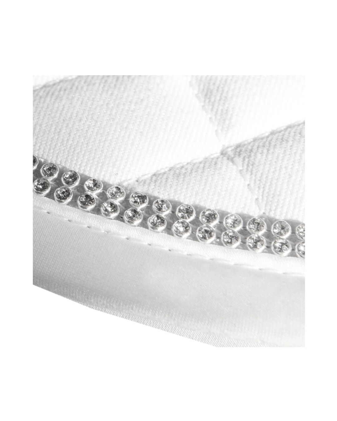 Strasssteine und ein Einfass in Satin verzieren den Rand der gesteppten Schabracke. Die feste Füllung und der geschwungende Rückenbereich bieten einen optimalen Sitz. Schweißaufsaugendes Untermaterial. Waschbar bei 30 Grad.Farbe: schwarz, marine, weißMaterial: Oberstoff und Füllung: 100 % Polyester Unterstoff: Baumwolle-PolyestergemischArt.-Nr.: 111 07