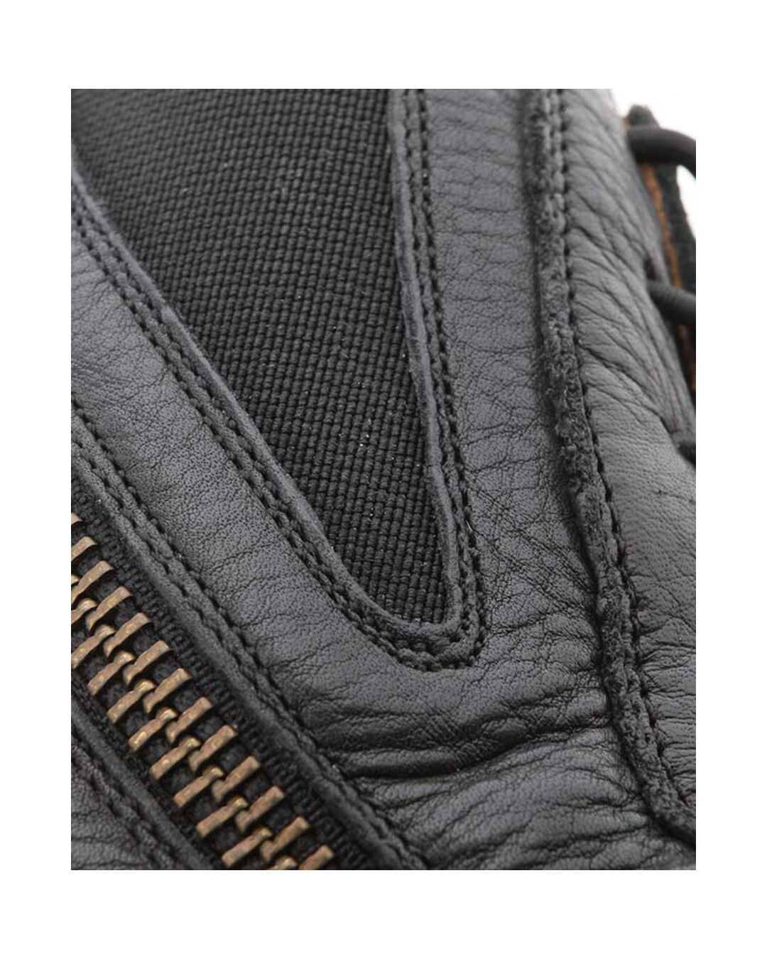 Die schmal geschnittene Form und die speziell entwickelten Leisten sorgen für höchsten Tragekomfort, besonders für schmale Füße. Eine hochwertige, atmungsaktive Einlegesohle unterstützt die optimale Druckverteilung und fördert das natürliche Abrollen des Fußes, was die Gelenke schont. Die robuste Anti-Rutsch-Gummisohle gewährleistet Flexibilität und sicheren Halt, während der seitlich gebogene Reißverschluss in Messing-Optik und die elastische Schnürung vorne für eine perfekte Passform und leichtes An- und Ausziehen sorgen.