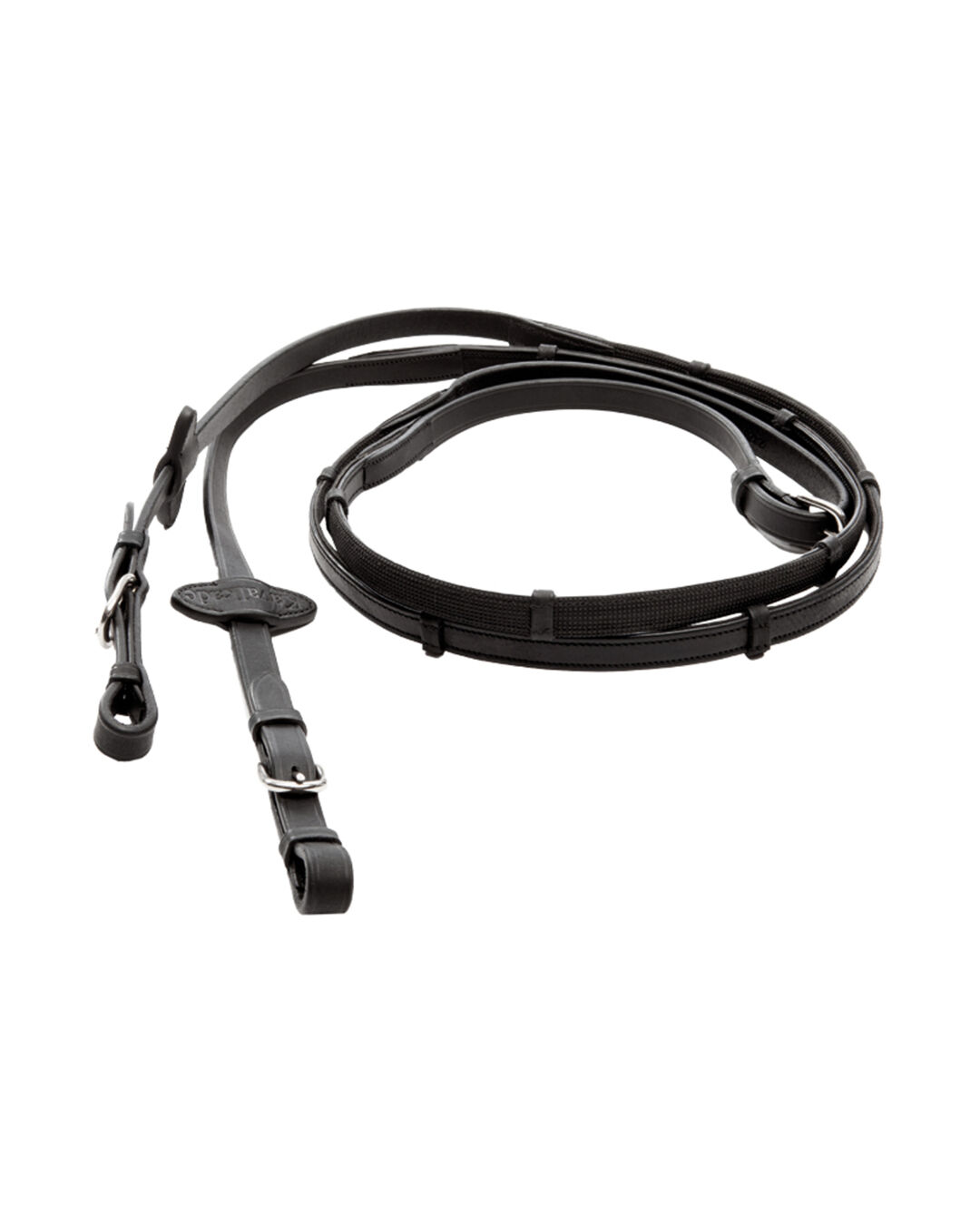 Mit fünf Stegen ausgestattet, erlauben diese Zügel eine flexible Handhabung und bieten vielfältige Einstellungsmöglichkeiten während des Reitens. Sie sind in zwei Größen erhältlich: Pony (120 cm lang) und Warmblut (140 cm lang), jeweils mit edlen silbernen Beschlägen, die nicht nur funktional, sondern auch optisch ansprechend sind.