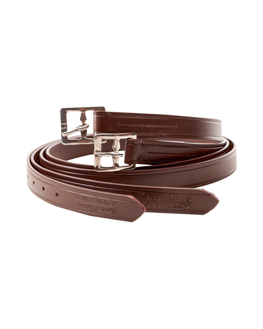 Die Riemen sind in den Längen 120 cm, 145 cm und 160 cm verfügbar, was eine individuelle Anpassung an unterschiedliche Reitergrößen und Satteltypen ermöglicht. Die silbernen Beschläge ergänzen das schlichte Design und bieten eine sichere Verbindung zu den Steigbügeln.