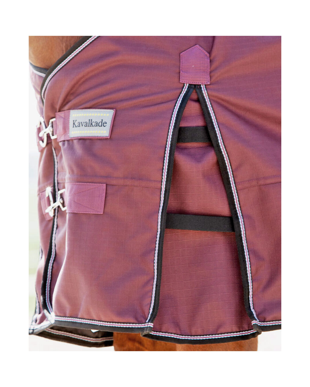 Die Decke zeichnet sich durch viele durchdachte Details aus, wie die Möglichkeit der Verwendung von Beinschlaufen, einen tiefen Schweifriemen für zusätzlichen Schutz, einen großen Schweiflatz und Schlaufen zur Befestigung eines optionalen Halsteils. Ein weiches Widerristpolster, elastische Kreuzgurte und ein glattes Innenfutter sorgen für Komfort, während der 2-fache Clip-Verschluss mit Ringsystem im Brustbereich individuell einstellbar ist.