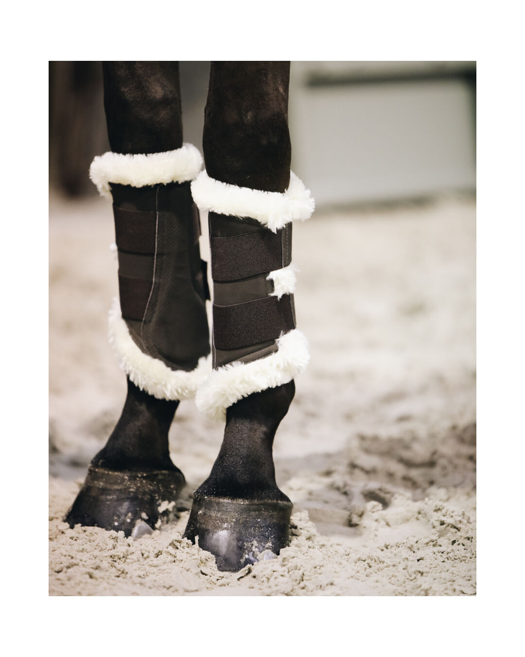Das luxuriöse Innenfutter aus künstlichem Lammfell bietet nicht nur höchsten Komfort, sondern ist auch perfekt für Pferde mit empfindlicher Haut geeignet. Dank der 100%igen Atmungsaktivität sind diese Gamaschen optimal für den Einsatz im Freien.