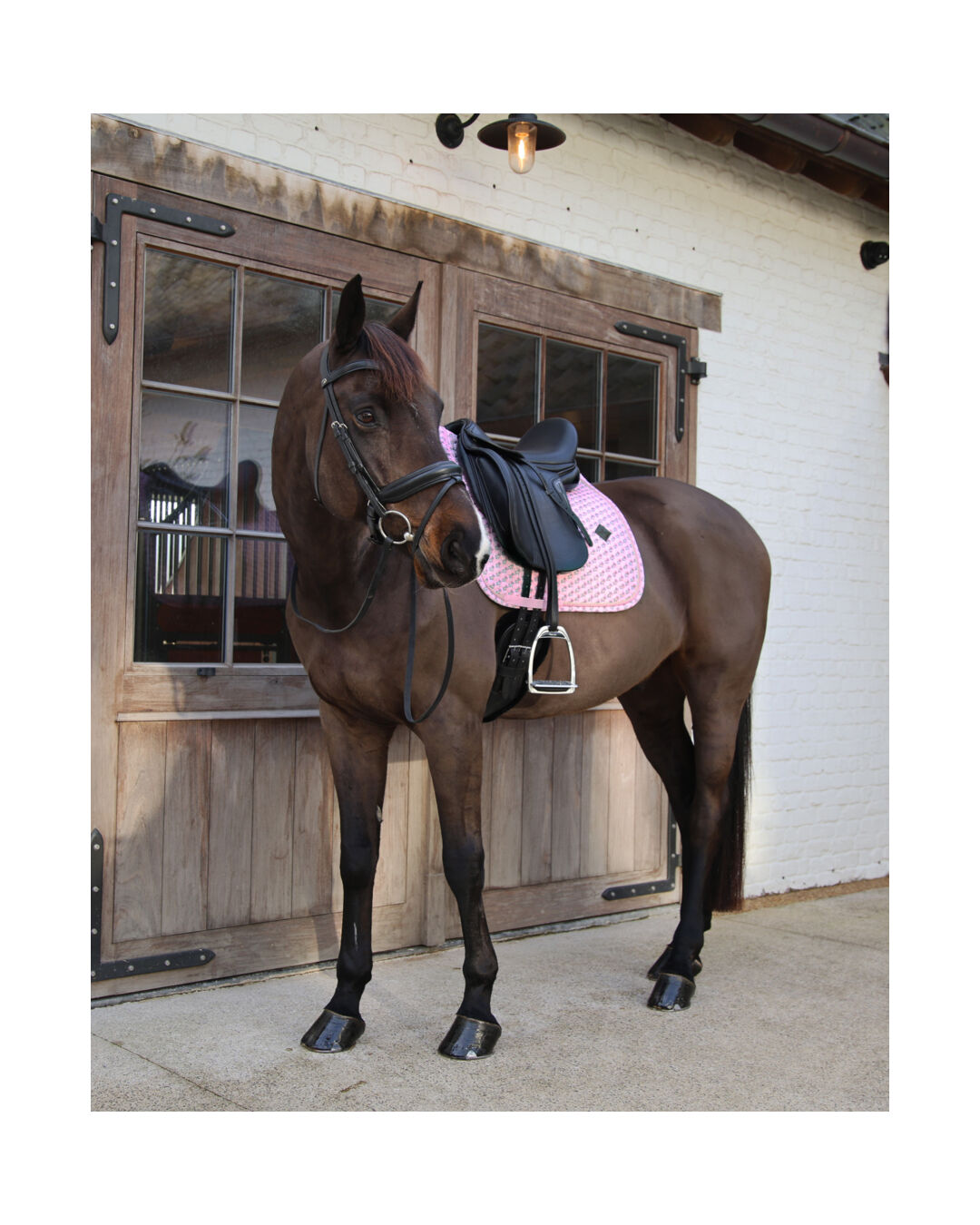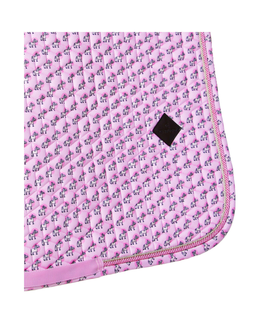 Durch die spezielle Steppung und das atmungsaktive Baumwoll-Polyester-Gemisch sorgt sie für eine gute Polsterung zwischen Sattel und Pferderücken und schützt gleichzeitig vor Reibung. Der Schweiß wird zuverlässig absorbiert, sodass dein Pony auch bei intensiven Trainingseinheiten trocken bleibt.