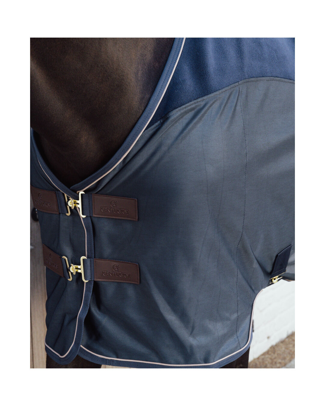 Die Fliegen- & Abschwitzdecke Combo Mesh von Kentucky ist eine vielseitige Decke, die dein Pferd sowohl im Stall als auch unterwegs bestens begleitet.