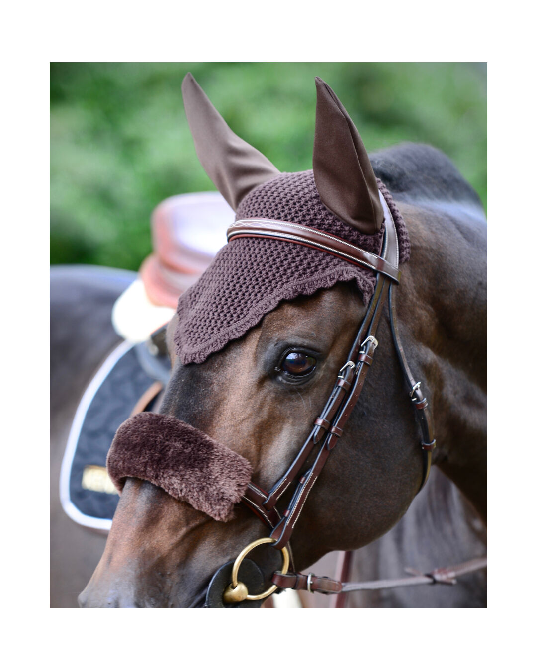 Das dehnbare Material um die Ohren sorgt für einen optimalen Schutz vor lästigen Fliegen und anderen Insekten, während das verlängerte Genickstück ein Verrutschen verhindert, sodass sie auch bei intensiven Ritten sicher sitzt.