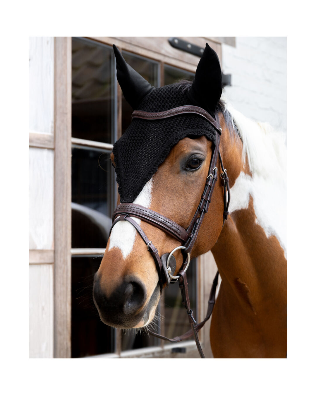 Die geräuschdämmenden Ohren helfen deinem Pferd, sich besser zu konzentrieren, während das verlängerte Nackenteil und die Befestigung am Nasenriemen ein Verrutschen verhindern.