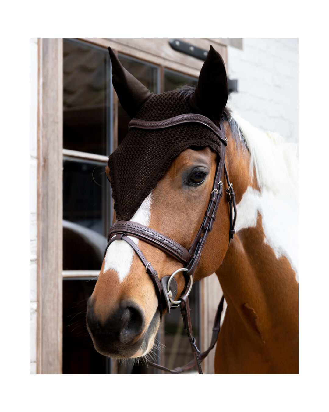 Die geräuschdämmenden Ohren helfen deinem Pferd, sich besser zu konzentrieren, während das verlängerte Nackenteil und die Befestigung am Nasenriemen ein Verrutschen verhindern.